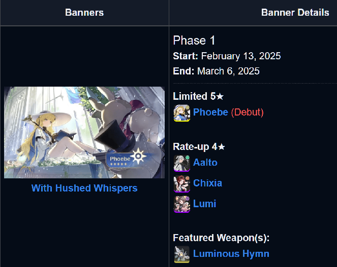Download (Android/iOS/EGS/Windows)https://wutheringwaves.kurogames.com/en/#mainhttps://store.steampowered.com/app/3513350/Wuthering_Waves/>Wuthering Waves Cinematic Short | Salvationhttps://youtu.be/TnXzZxKmGYk>Wuthering Waves Story Cinematics | Originhttps://youtu.be/DXRqVumTFh4>Wuthering Waves | Resonator Showcase | Aemeath — GRADUATION SHOWhttps://youtu.be/H8gGJgMvr9w>Wuthering Waves Resonator Combat Showcase | Aemeathhttps://youtu.be/psq5Izh9GHM>Wuthering Waves Version 3.1 Official Trailer | For You Who Walk in Snowhttps://youtu.be/6lpiSBvawB0>Map:https://wuthering-waves-map.appsample.com/>Convene Trackerhttps://wuwatracker.com>EventsWHEN IN DOUBT, CHECK: https://wuwatracker.com/timeline[Peaks of Prestige: Rekindled Duel Echo Combat Event][05 Feb -17 Mar][Startorch For You] [05 Feb -17 Mar][TERM-X: Outreach Exploration Event][05 Feb -17 Mar][Full Throttle! Bolt & Blitz! Leisure Event][06 Feb -17 Mar][Where Stars Cascade Down: Limited Time Event] [14 Feb -18 Mar]>Timeline, Rewards and Media Contentshttps://rentry.org/wuwavgv2>Emoteshttps://drive.google.com/drive/folders/1GY6YgPhhOsxN2oW0AbIywdO9Z1_OFe6Khttps://files.catbox.moe/49buge.zip>/wuwa/ Friends Listhttps://docs.google.com/spreadsheets/d/1MzulbsusjOWpaFg6o6kk3TvCWfFYi6EF7NyJXqIazGo>NEWS/EVENTS (and patch notes)https://wutheringwaves.kurogames.com/en/main/news/detail/3941https://wutheringwaves.kurogames.com/en/main/news/detail/3920Previous: >>557308943
