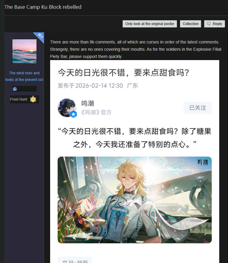 Mm… we really have heard a lot of voices. Some of them have been very, very… (chokes up) sharp, even saying that Wuthering Waves and the entire development team are worthless. (chokes up) Many people have also said that our project team is arrogant and unwilling to listen to everyone.But just like Bawang and Planner Dong mentioned (chokes up), we’re actually the same as all of you. We’re players too. The things everyone is feeling (chokes up), we’re feeling them as well. It’s just that for us, there are simply too many voices coming in at once. We need to calm down and figure out which of those are the genuine voices of you Rovers.For Wuthering Waves, the only thing that can never change is our companionship with the Rovers. Everything else can change. So today, everyone is shouting, streaming, and you’ve seen that we’ve made many changes, whether to game content, rewards, or various optimizations. (pauses)We believe that as long as Rovers are happy, that’s enough. We can change anything, because (pause)… if even the Rovers no longer like Wuthering Waves, then what meaning would anything we do have? Right?