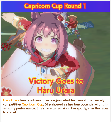 Tactics are actually a factor huhSMaru will slow other fronts and paceUrara and Groove have the same stats but Urara has higher guts, causing them to duel all the time and slingshot Urara into the front during the final 300m when Mummy and Pulse triggers for more slingshotThat's cruel