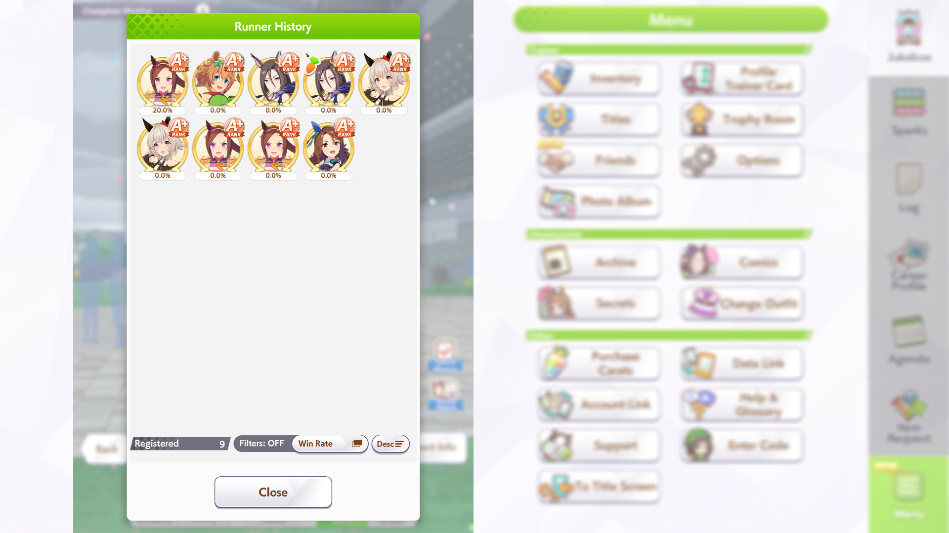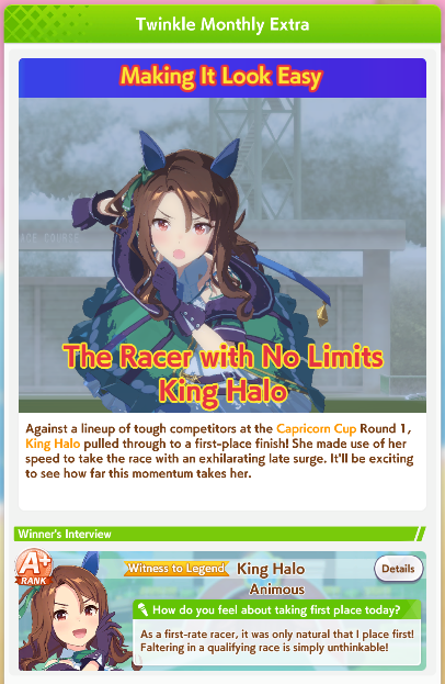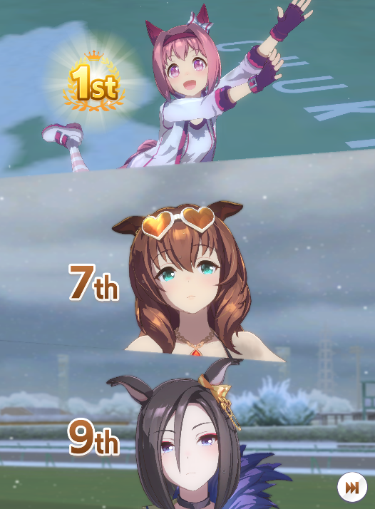 >2/4 wins>last race>top ace bad mood>late start>lose by 3/4 lengthI exist to be an NPC others beat in this game. Fuck everything.
