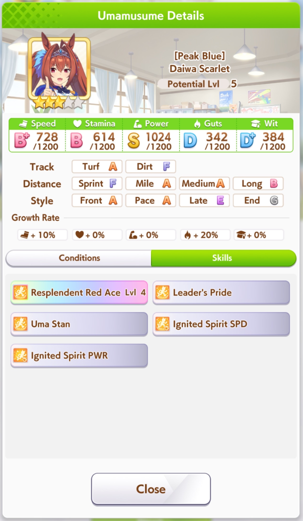>>557374584Obviously, her unique ignores any stamchecks, and she has 20% speed. Pretty easy to get A on Mile and Long too.