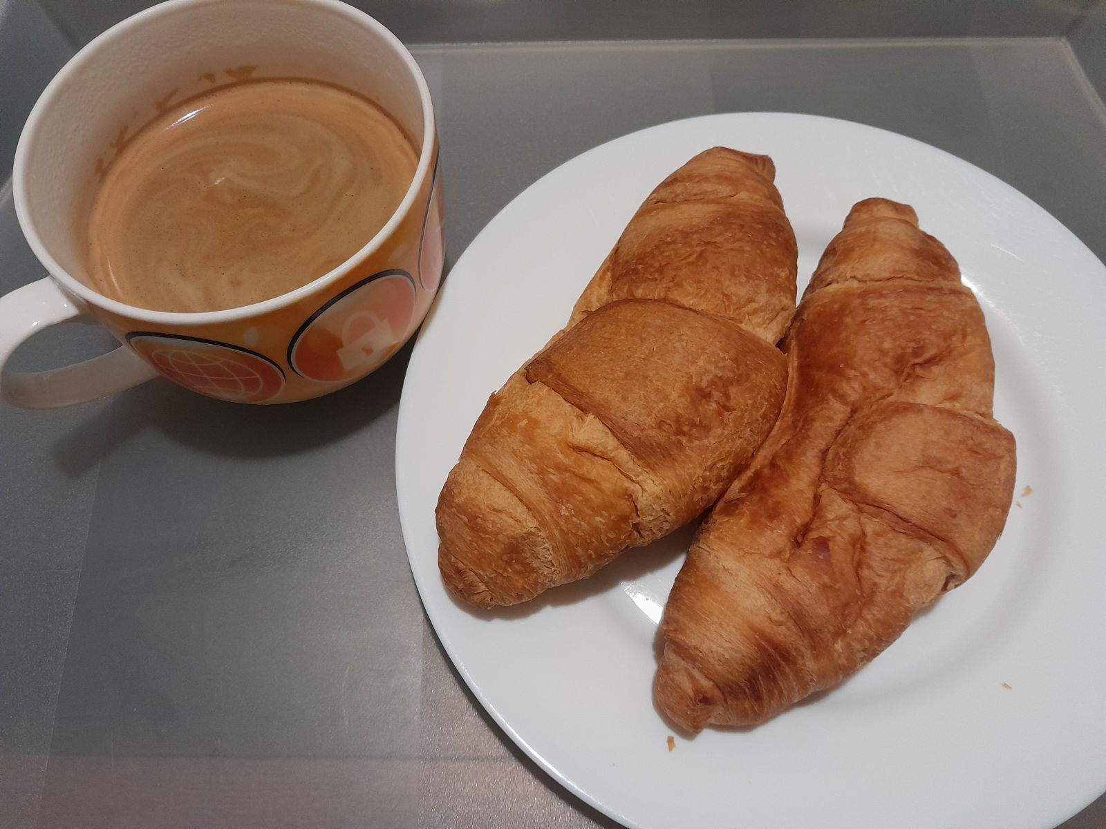 Croissantpost.Hopefully it'll be an uneventful day today.I owe 12.5 hours of work to my game. I suppose I could just wipe the slate clean because what's my game gonna do, break my kneecaps? But that would be letting productivity standards slip uncontrollably and I could end up not working on my game for even an hour a day. So it's 12.5 hours.