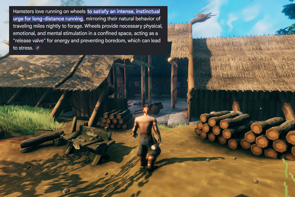 >>557467838TLDR: massively multiplayer persistent sandbox world where every player is competing to be labeled "the main character" by an AI because they know if they do then they'll have literal anime episodes made about their adventures on the game's main YouTube channel