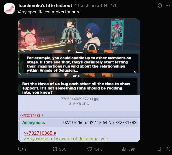 I dont really care what other people ship but the discourse about whats canon or isnt is absolutely retarded and most commonly done by haremchuds and yaoi fujos, by that I mean them imposing their ship on other people while canonicity was never actually important in shipping especially before corona and hoyoverse market explosion, meanwhile yuriGODs enjoy women being together in peace