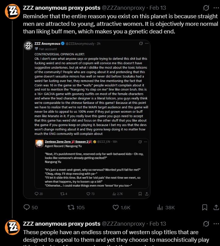 >make (((fan favorite))) upcoming agent>specifically make her chained to a half a year old annoying agent that was the genesis of Flopped meme that 5% of the playerbase haveI dont play other gachas so Im probably out of the loop, but this decision sounds insane?
