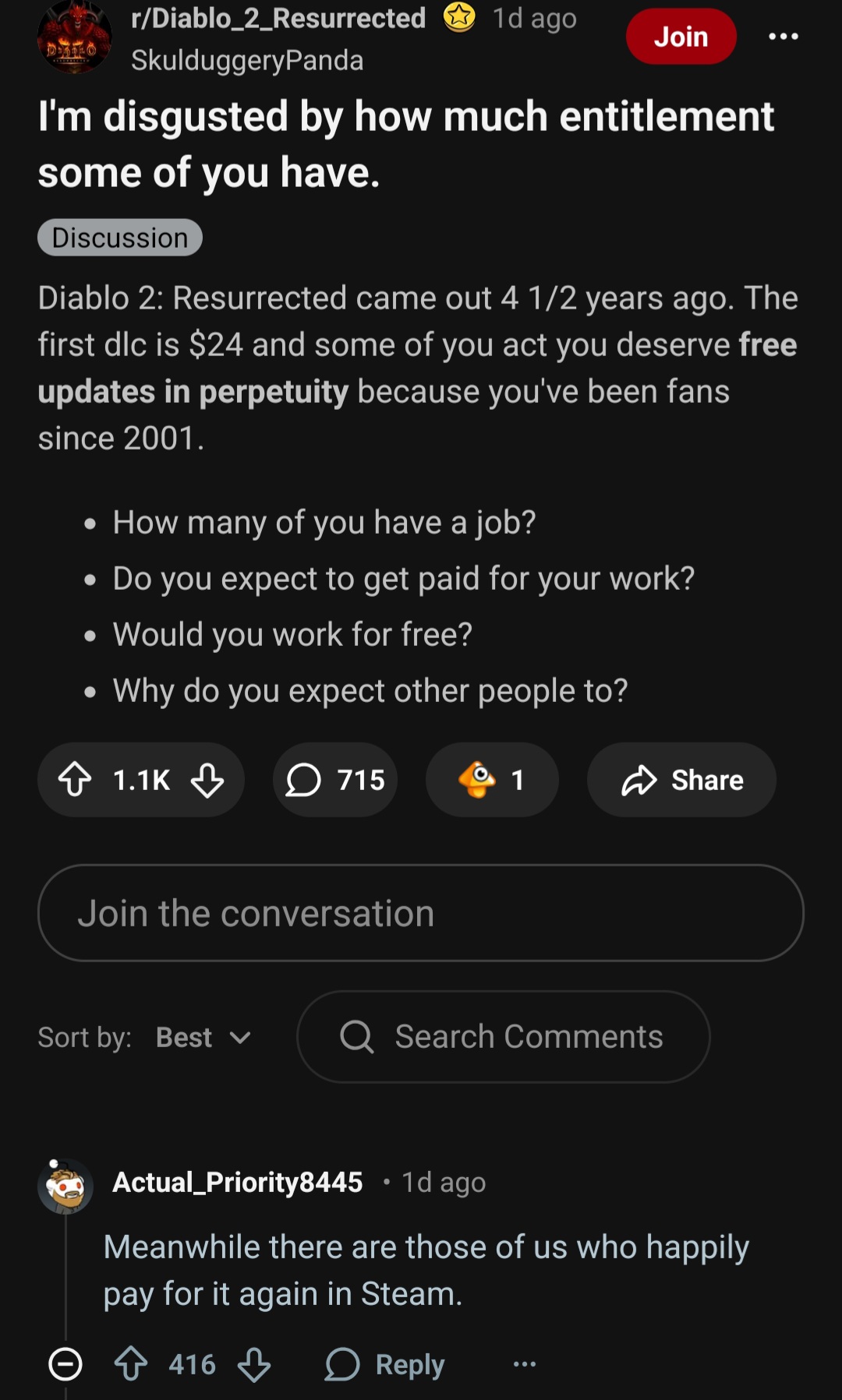 I thought they might have offered a free upgrade for oldschool fans. But its Blizzard I guess.