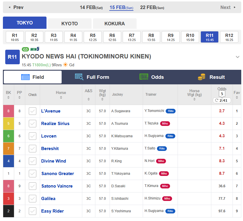 02/13 - 02/19 - Capricorn Cup - Chukyo Turf 1200m