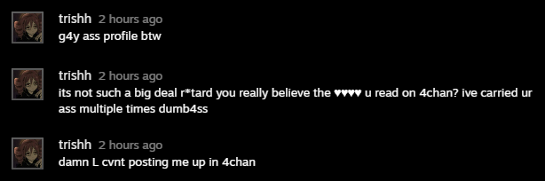 >>557414052Didnt play with us all expedition luckily we didnt even need his 0 dps ass>>557413979Even tho the person i sent that to forgave me and we play regularly, stay sour and amusing me