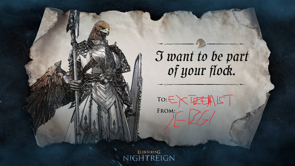 /erg/ Nightreign Valentines Day SpecialOnly Duos are allowedYou either pass queue or add someone from /erg/ to be your Valentines Day Event Partner and post screenshots and a small story after each win or lossHappy Valentine's day, go queue with your partner