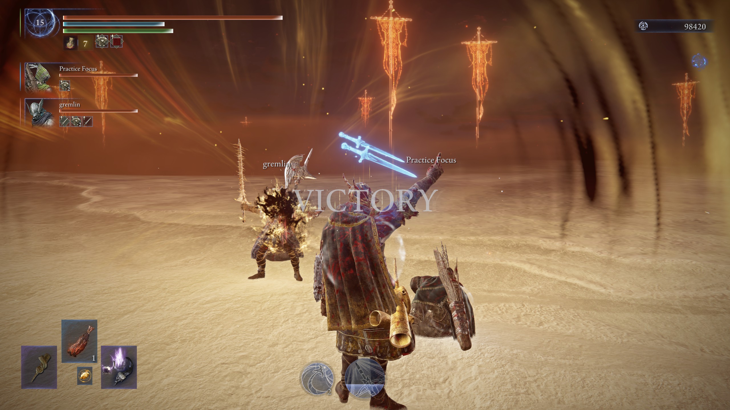 GG Dreglord. We almost wiped to a single combo lol. But hey, a win is a win.I was certain you guys were going to run from the godskins. When I turned my camera around and saw you were engaged with them, I was like "fucking hell".>>557514915Congrats. I hope to be behind you. Only 2 more wins for me.