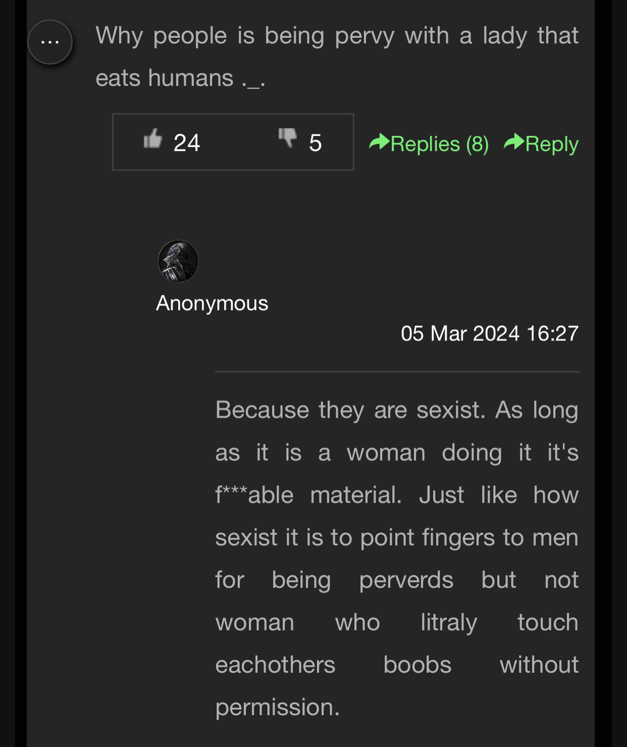 Why is the comment section for Maneater Mildred so fucking horny