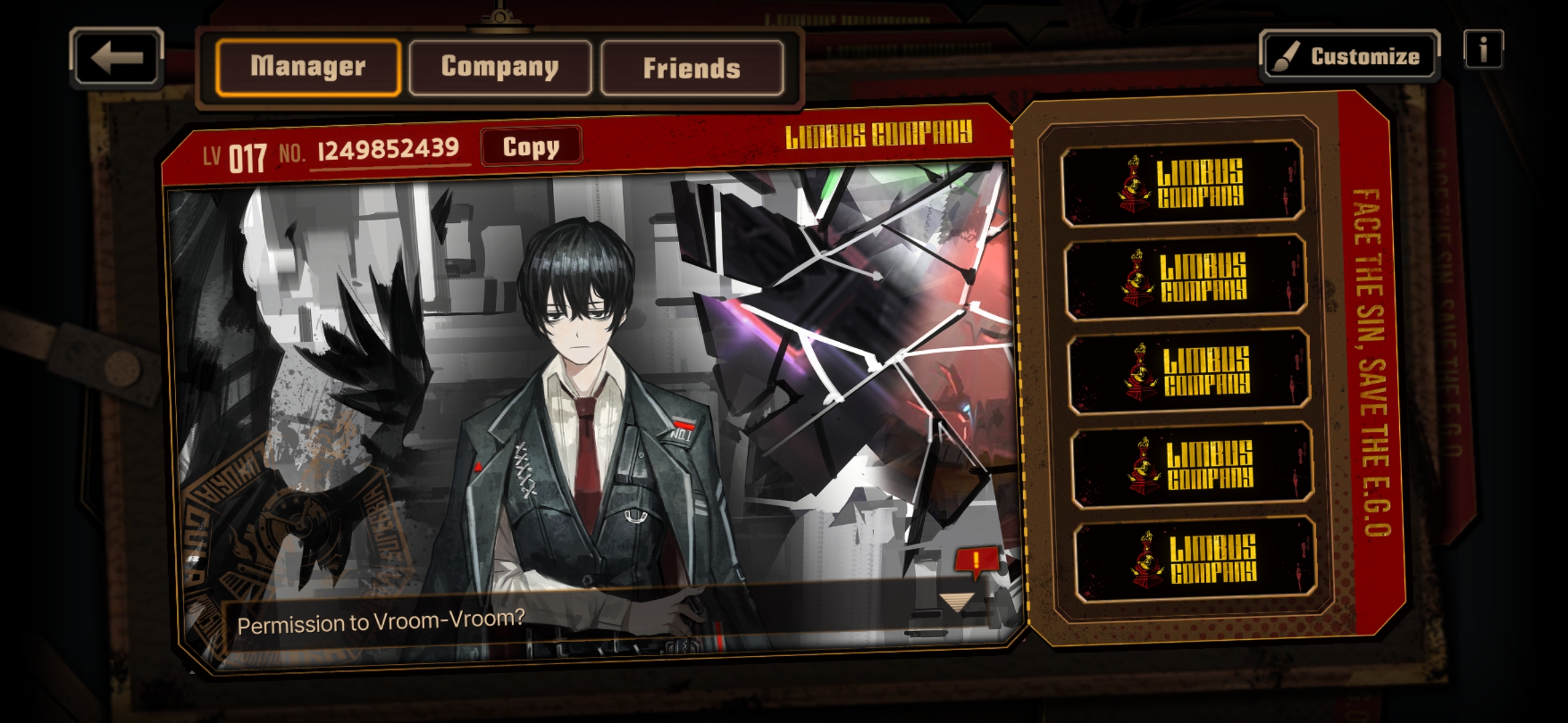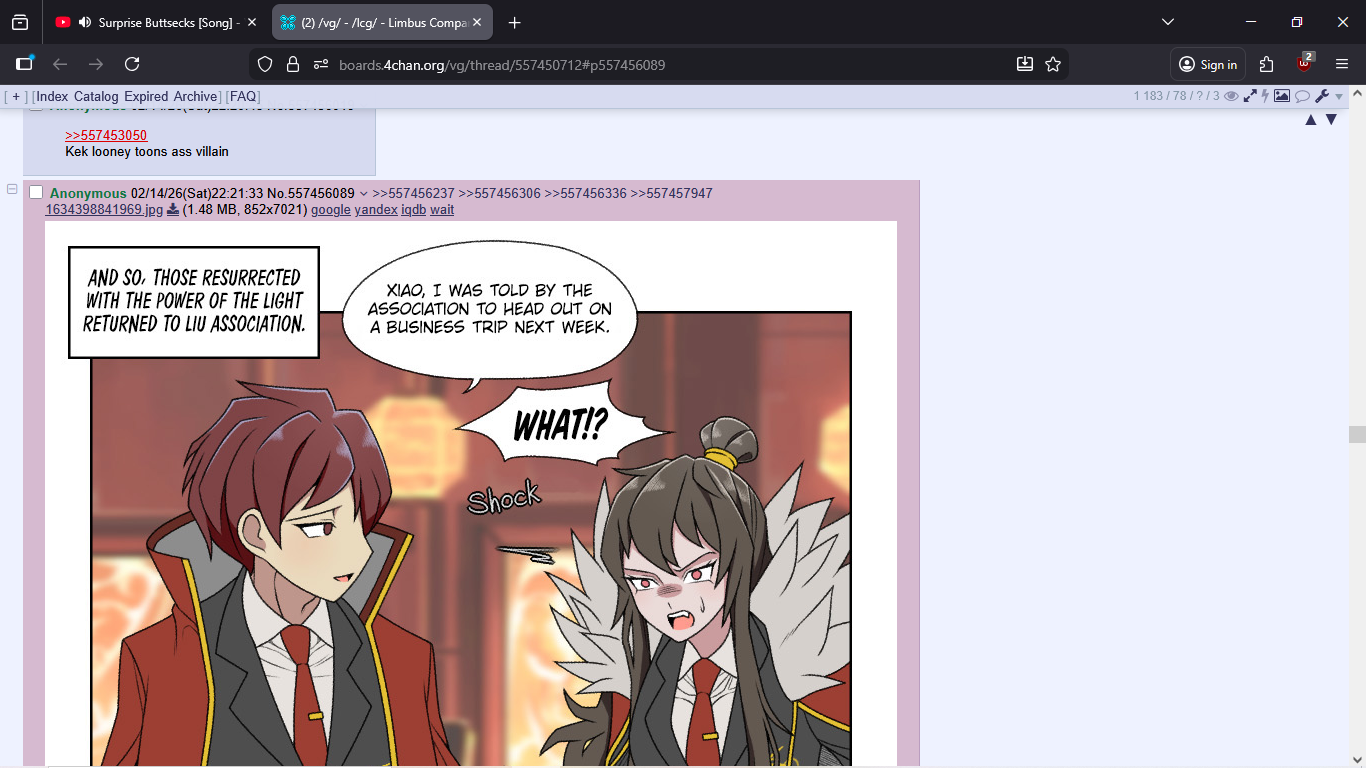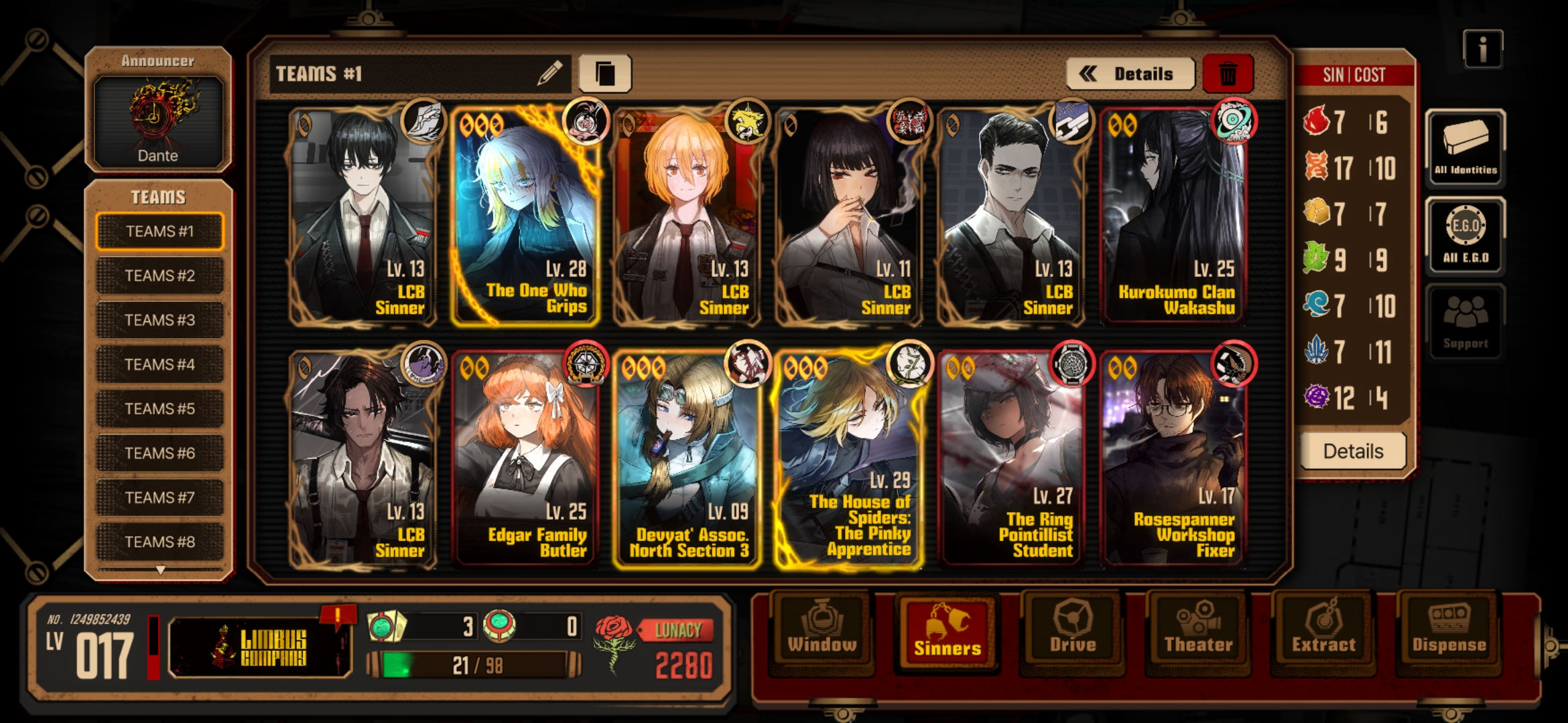 Previous thread: >>557403671Season 7 - Kumo no Ito2025.12.31 —Mirror Dungeon #6 - Mirror of Immortality2025.07.03 —Refraction Railway Line 5 - Merry Go Round2025.02.20 —>Current Events>Upcoming Extractions2026.02.19 — 2026.03.05[000] The House of Spiders: The Index Nursefather Yi Sang>Current Extractions2026.02.05 — 2026.02.19[000] The House of Spiders:The PinkyApprentice Sinclair[000] Lobotomy E.G.O:: LAMP Gregor2026.02.05 — 2026.02.19Target Extraction: [ Faust ] ID & E.G.O>FAQs! This game is directly tied to the setting of Project Moon's previous games, Lobotomy Corporation and Library of Ruina, and is set after both. Expect spoilers for those games in this thread.! The tutorial is important.>Download linksAppStore: https://apps.apple.com/app/limbus-company/id6444112366Google Play: https://play.google.com/store/apps/details?id=com.ProjectMoon.LimbusCompanySteam: https://store.steampowered.com/app/1973530/Limbus_Company/>Other linksOfficial twitter: https://twitter.com/limbuscompany_bOfficial youtube: https://www.youtube.com/@ProjectMoonOfficialOfficial site: https://limbuscompany.global>Required readinghttps://mega.nz/folder/xosDkZ5Z#Wt4JpUt5Bb2XG77pxuuXpw>For all your EGO and Sinner info needshttps://limbus.kusoge.xyz/https://gll-fun.com/en/>Useful resources and a general guidehttps://rentry.org/lcg_resourceshttps://rentry.org/lcbguidehttps://rentry.org/LCB_optimal_grind_guidehttps://lcb-days-since-last-id.carrd.co/https://lcb-days-since-last-ego.carrd.co/>Countdownhttps://lcbcountdown.carrd.co/