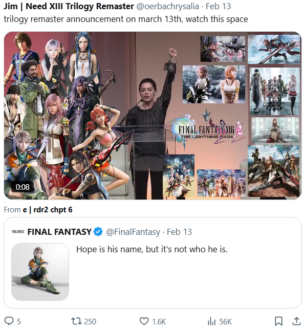 >>557466764Original post has 9K likes which is a number for the official FF twitter. What is happening?