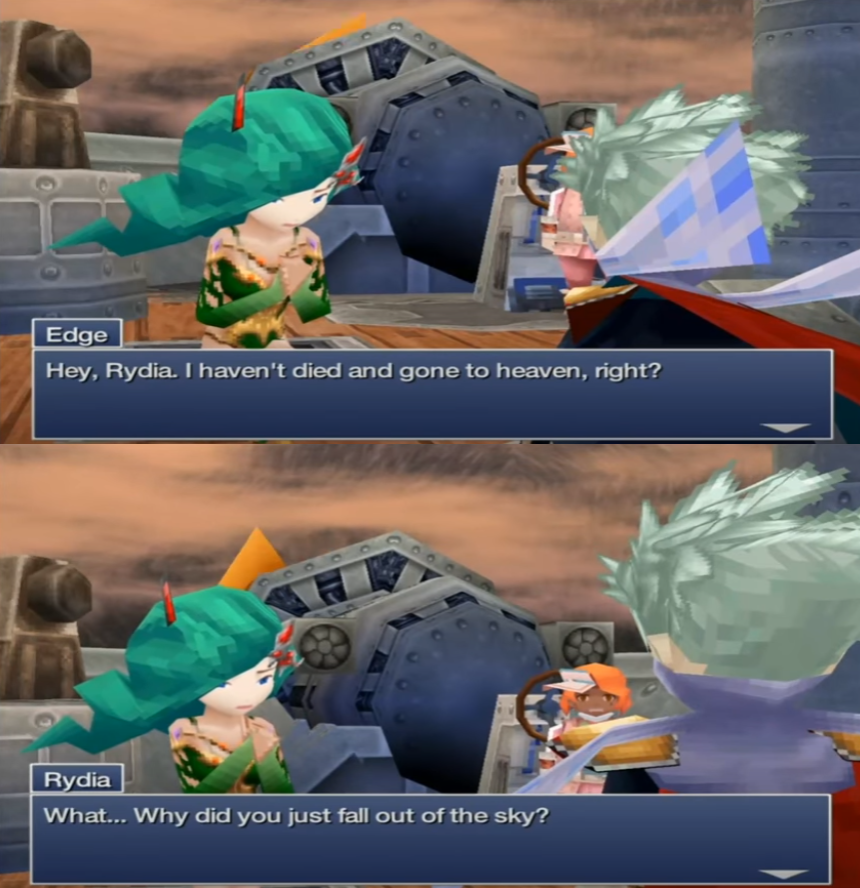 >>557888915>but I really, REALLY dislike poor Edge still holding a candleYeah. It's kinda weird, but you can't blame him for trying I guess. Rydia is a goddess. >>557889758>>TAY exists>>we could have gotten FFV and VI remade on DSThat's not how the timeline works out though. The reason we don't have a Remake of V or VI is because Team Asano made a shitty game, then made Bravely Default, then made Octopath Traveler, made a pit stop for Live-A-Live which was likely a pet project because the Live-A-Live guy is on Team Asano, and now they're doing Dragon Quest Remakes. TAY was originally a mobile game released in installments much earlier, and the PSP versions have nothing to do with it either.