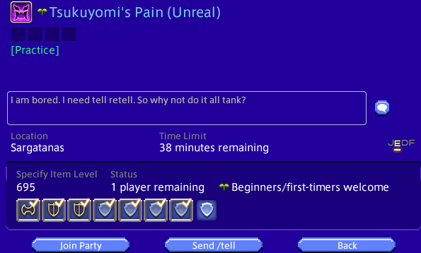 >want to play another job>need like 200 more weeks of tomestones and like 90 more reclears I fucking hate this gearing system so much, we're already reclearing in under 40 min, let me farm it more YPiss