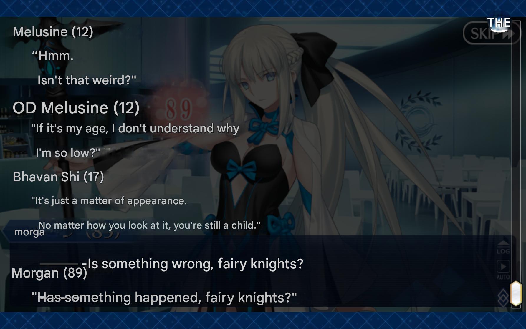 Parenthood Scores: (Camelot-London-LB6 Cast)>Gawain: 64>Lancelot: 44>Percival: 60>Tristan: 36>Gareth: 22>Mordred: 15>Bedivere: 62>Artoria Lancer: 38>Mash: 43>Blackbeard: 45>Frankenstein: 17>Jekyll: 29>Babbage: Undeterminable>Castoria: 15>Barghest: 24>Baobhan Sith: 17>Melsuine: 12>Morgan: 89 (changes to ?? for a still undetermined reason)