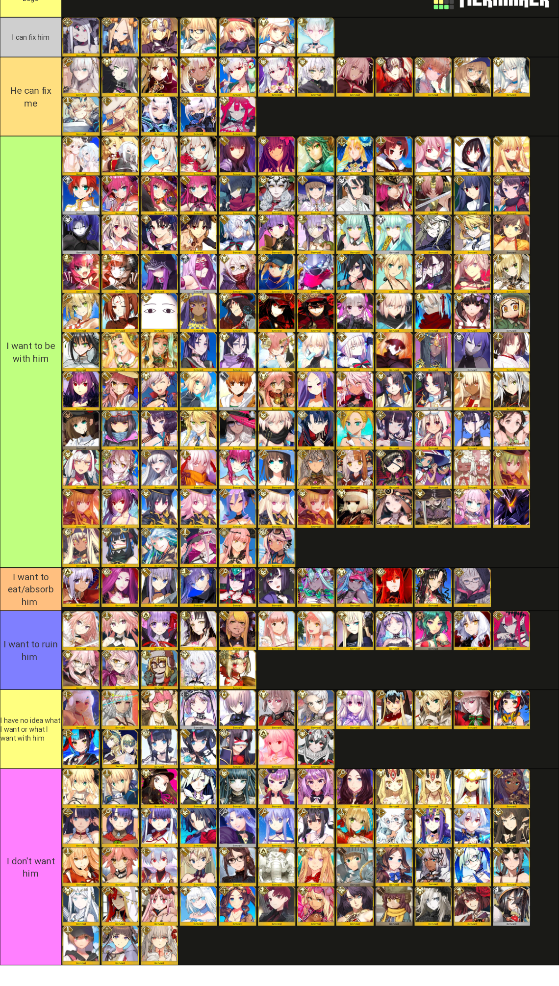 I legit forgot about Tomoe and Yui, I guess that Tomoe makes sense over 70 but I don't know much about the latterAlso it was obvious that Chiron would be an high ranker>>557599582>Medea is 02 (lol)>Medea Lily is 69 (LOL)Funny but also ouch