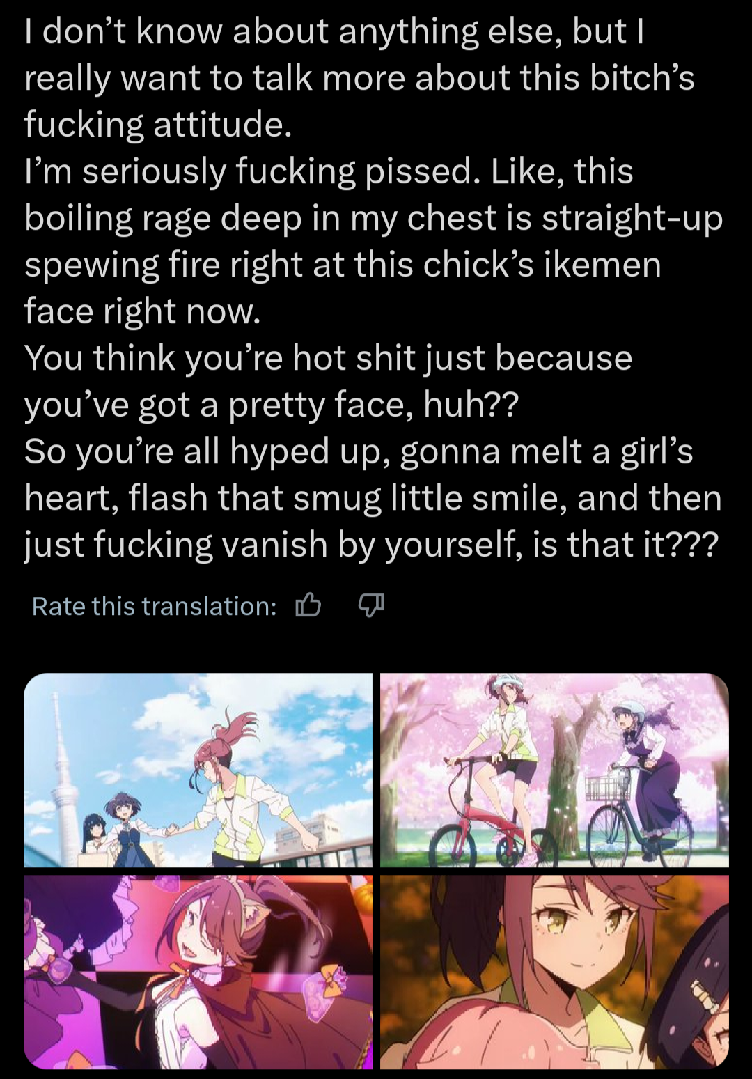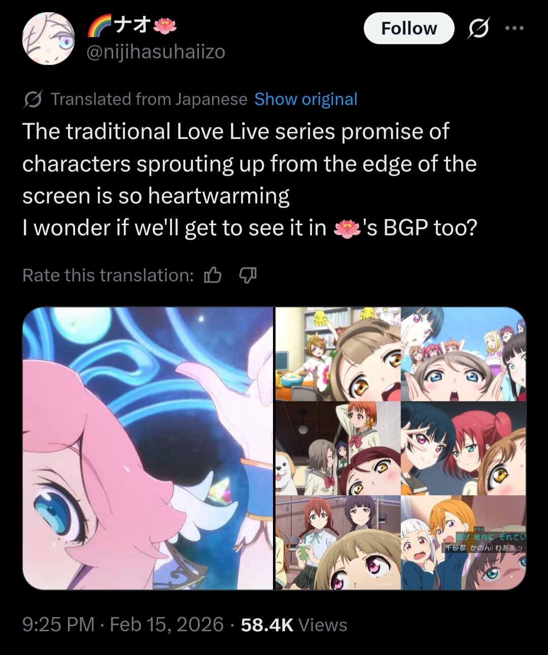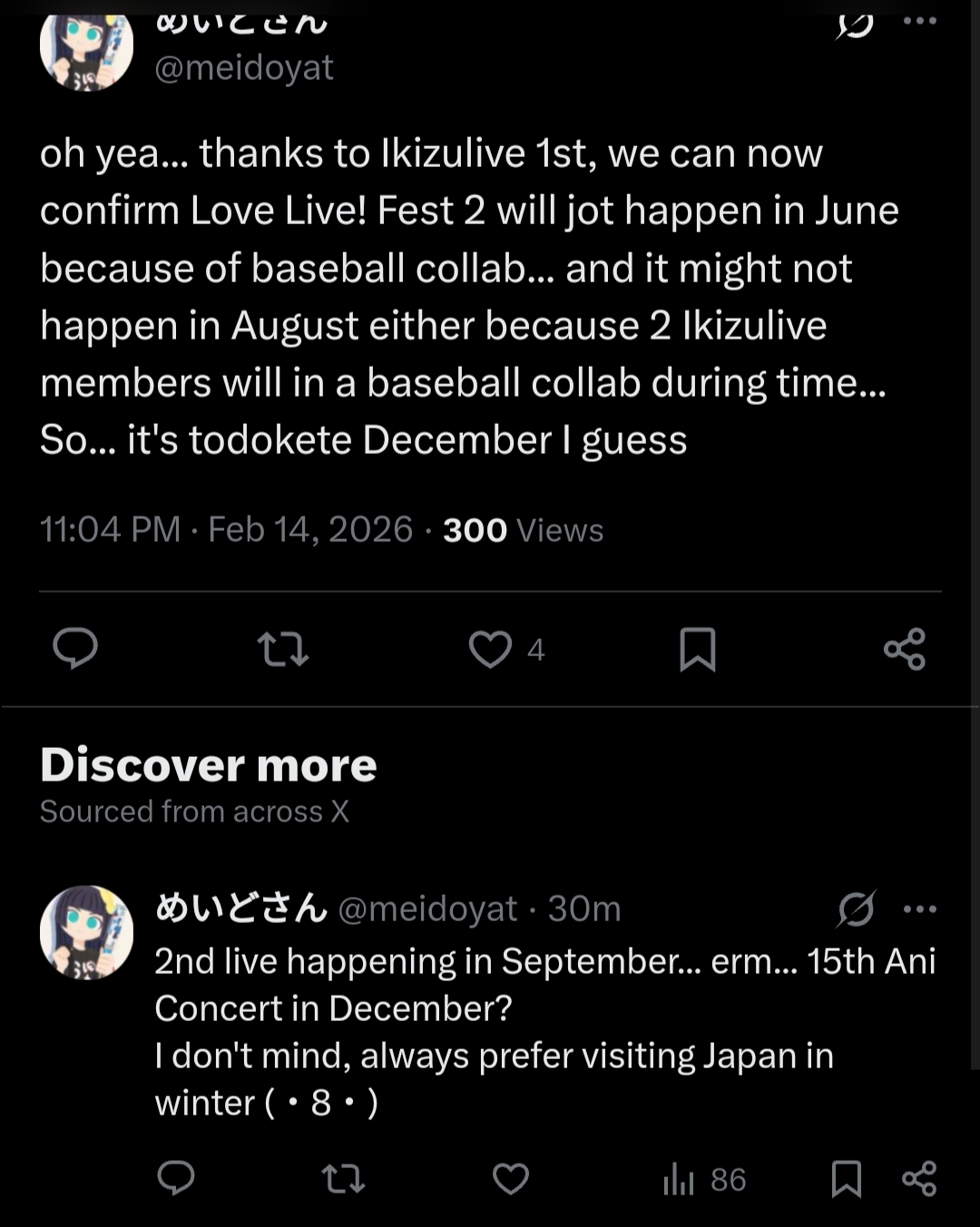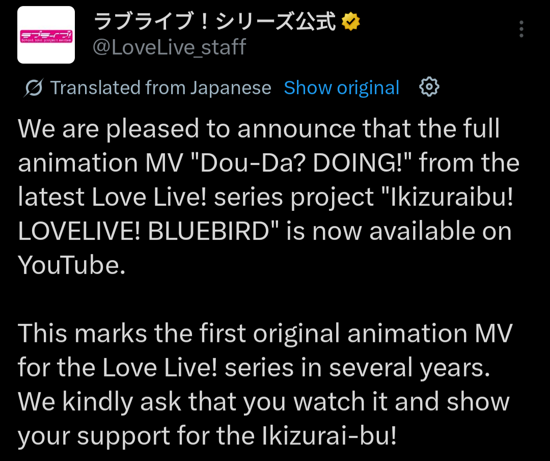 We have 4 active groups now and that's a lot for me personally. It's fucked up but I think I am actually dropping Liella at this point. I'll still keep up and watch lives when I can but I didn't expect bluebird to be that good after the tweet bullshit. Any true livers still following all groups or dropping Hasu or Niji?