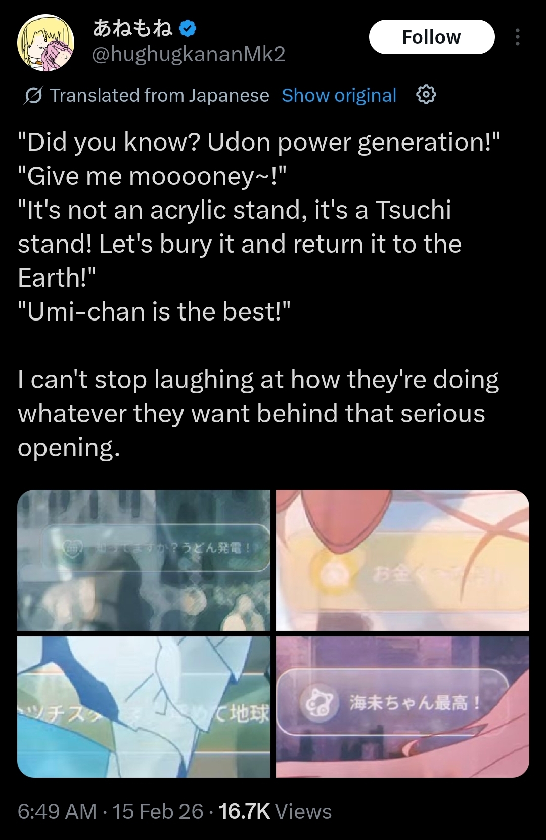 Here we have Tokonatsu Sunshine (banger) with 2.5 million views, 32k likes and over 1000 replies. This is normal viewership, nothing is off. Now for yohane bullshit…