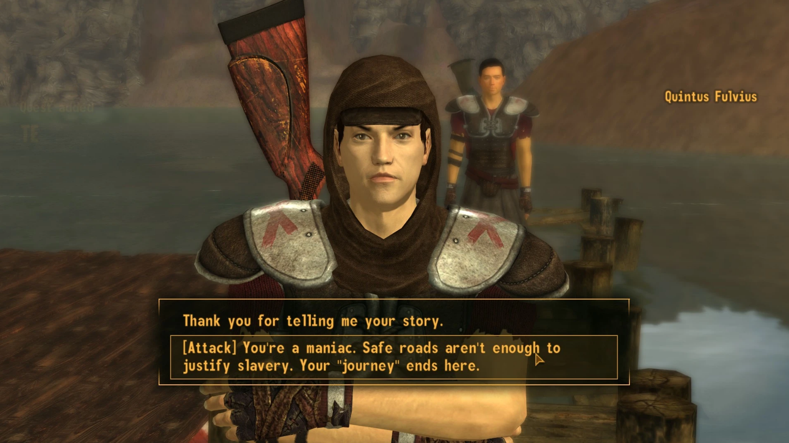 >>557502053boone, joshua graham, killing legion, NCR, fiends, accidentally shooting sunny smiles because she ran in front of me and got gunned down, uh...mods? i just hate being the courier and the forced backstory. lonesome road would've been much better if it was open world. new vegas barely feels like an open world and fast travel is a huge crutch, no reason to walk place to place.