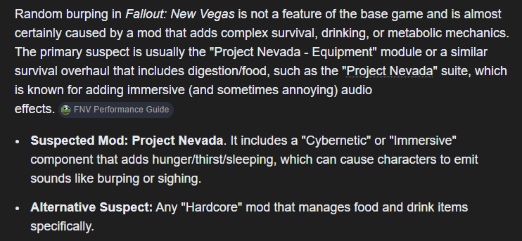 Why is my NV character sometimes burping randomly which mod is causing that? I hate it
