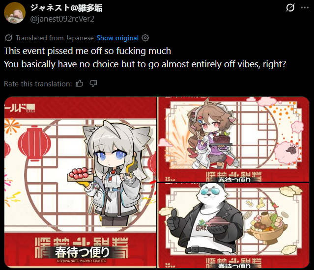 >>557523856But my friends are actually quitting the game as soon as their monthly cards are done in like four days because the events are so bad, we don't have a month to spare! Aieeeeeeee!!!