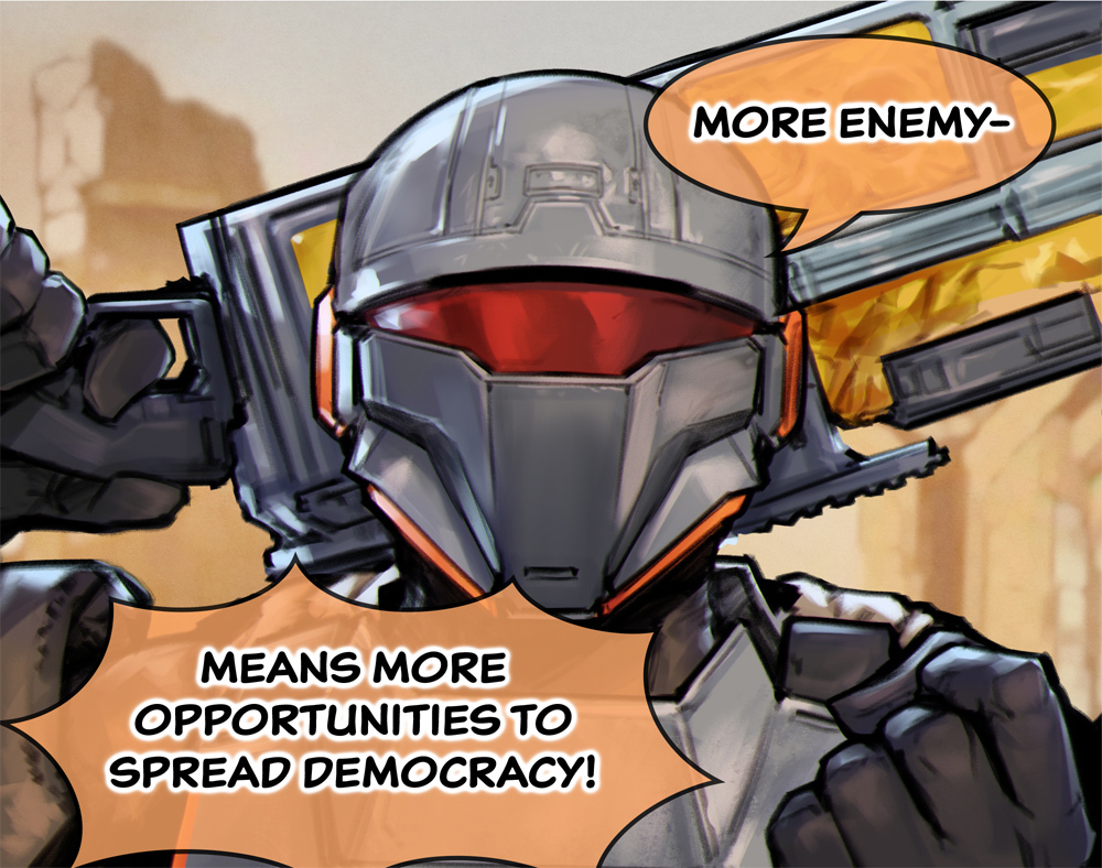 >constantly have minor orders to go off cyberstan in order to help the broader cyberstan effortI actually like this.It actually makes the hypothetical loss condition more fair. We lose if we didn't sometimes go off cyberstan to do secondary objectives (that give us reinforcements) in time. The only other way to measure the campaign would be a pure difficulty check, which would be hard for anyone, much less swigs, to calibrate.Also; having a reason to take a break from cyberstan is actually kinda nice. I'll happily dive some squids.