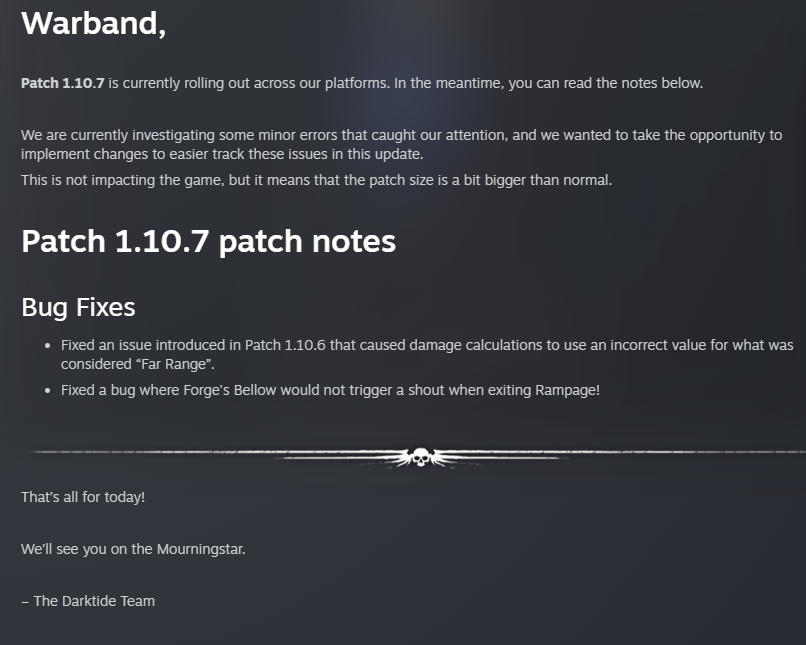 How long do you think it will take until the new content for Darktide comes out?