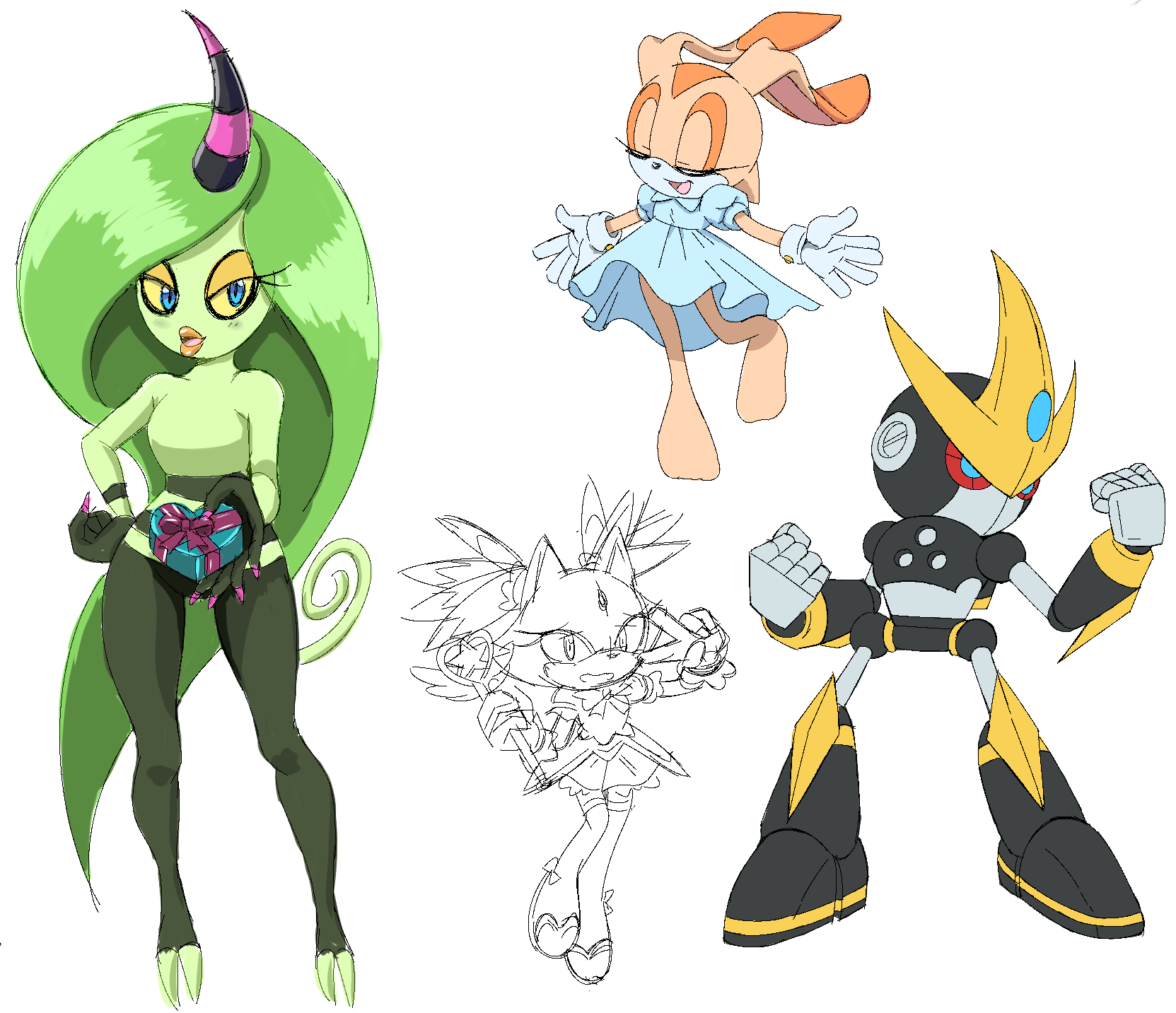>>557526176Hopefully this is more fun. I had 4 Tails/Rouge sketches I'd yet to complete
