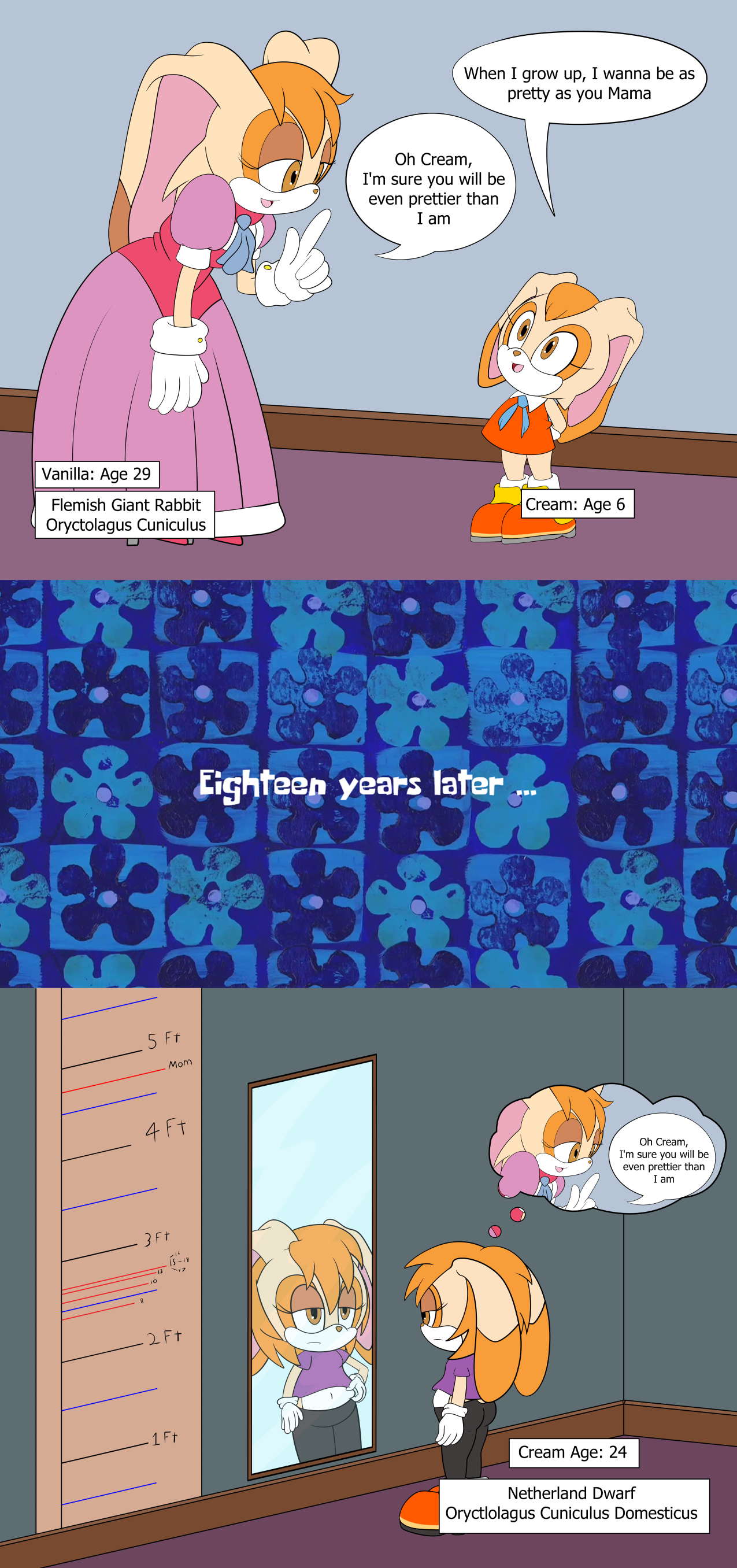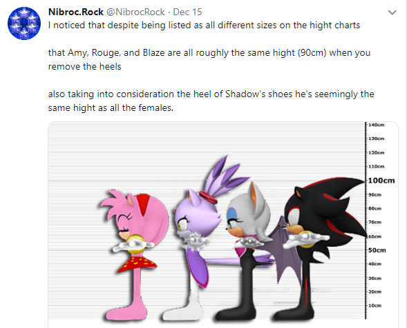 >>557590743Lemme give it to you in terms of Charmy then.Charmy the 6 year old toddler is 70% of Sonic's height.