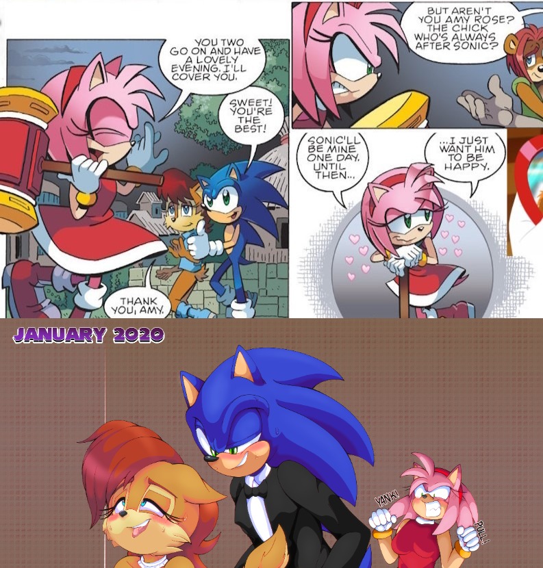 >>557592914>>557593036>>557593037>amy was so confident about being sonic endgame in archie, while trying to be a good friend to sonic and Sally >funnily enough, she was the literal endgame in the last page of the book.>Somehow people think she's a cuck>shipping wars when amy and Sally were super close friends just behind bunnie.