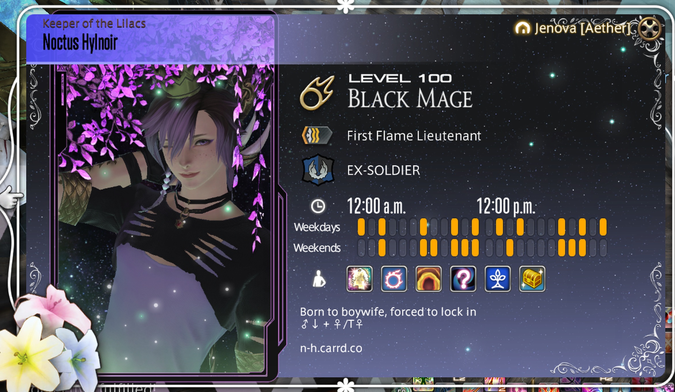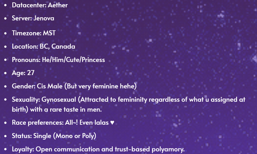 my meena is the yuta okkotsu of xivg (his EB died horribly and now haunts him and hurts any evil foids who approach him)