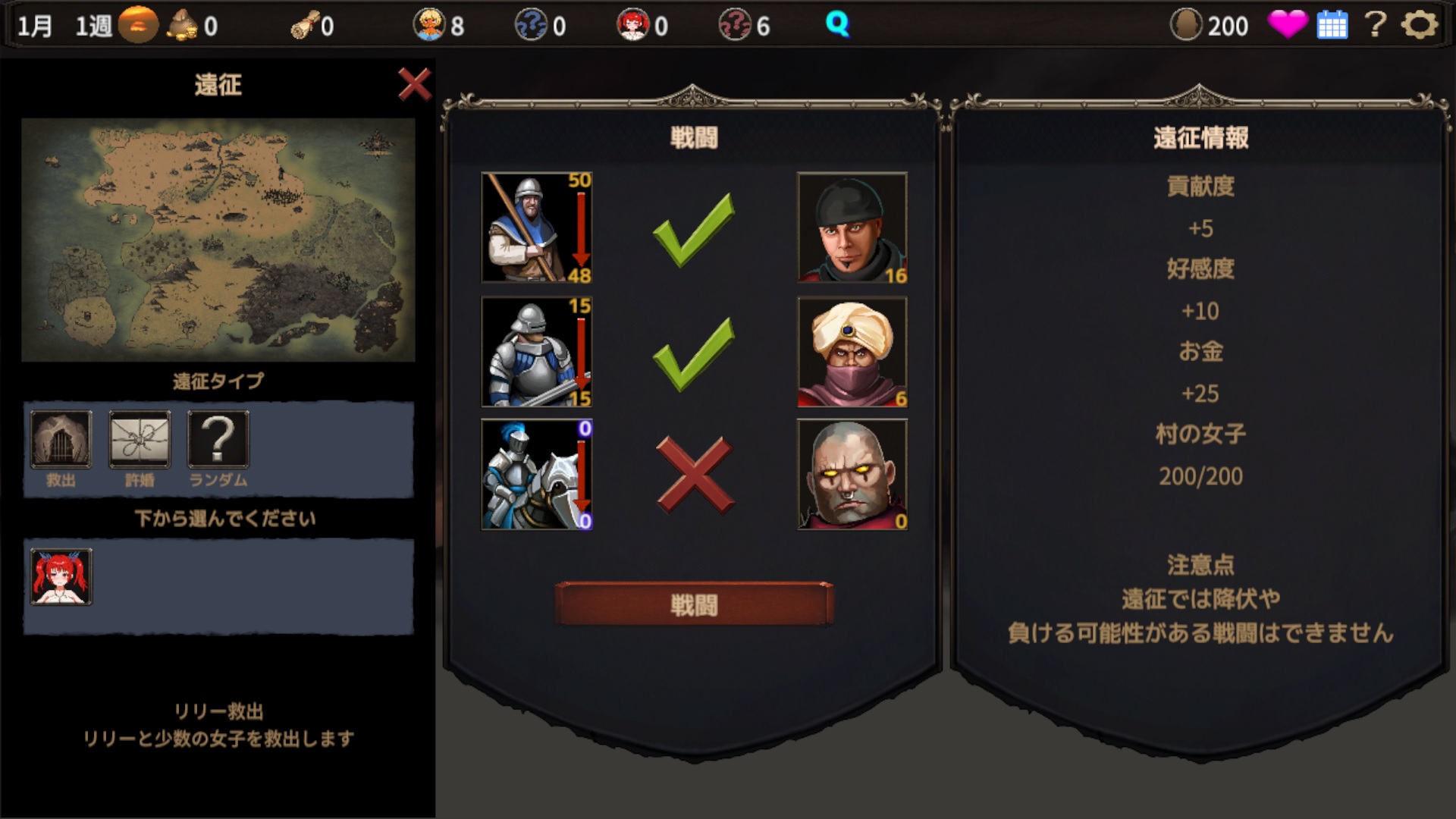 I'm playing through the tutorial again because I thought I was missing something from the actual main game. I got attacked the first week by an unbeatable horde and it's not giving me the option to get the girl back unlike this tutorial segment, only the town girls until I'm 200/200. What's going on?