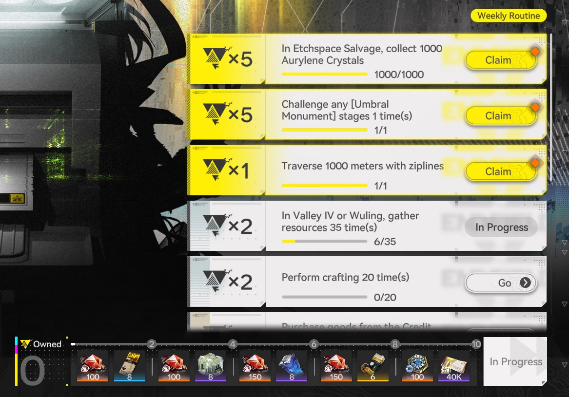 ngl. this is the first game that i'm not bother to do daily stuff.it just take too much time to do when compare to other gacha.>dijiang>visit friend 5x time to clue exchange/prod. assist>delivery 3x for credit coin>depot node wuling is a must to do>buy high sell low>photo wuling >spend stamina>etc. gather stufftake 20mins wtf