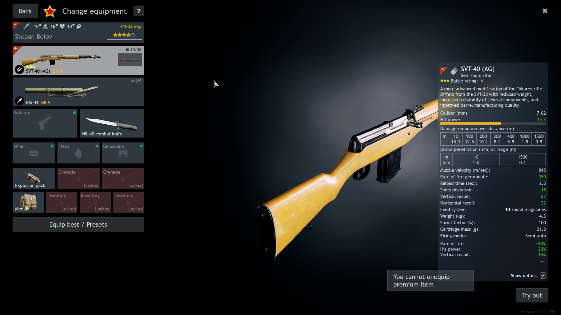 >>557558838>RM-40 used to be BR3And that's crazy considering it's equivalent to the Granatwerfer 36 which is BR1.Also, Gaijin needs to do something about this squad. You can't unequip the SVT-40. So you're forced to play it at BR5 if you want to use the BM-41, or bring the RM-40 from BR2 to BR4. The BR5 mortar is so much better than the other mortars.I want to build the automatic grenade launcher at BR1 and bully noobs with it. Let me equip the mortarmen with mosins. Or add an appropriate BR4 mortar.