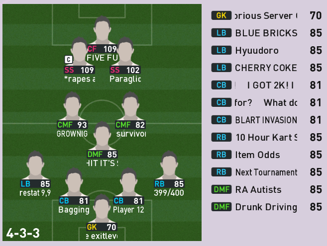 LP3 Formations (3 teams missing, feel free to call 'em mega gay).