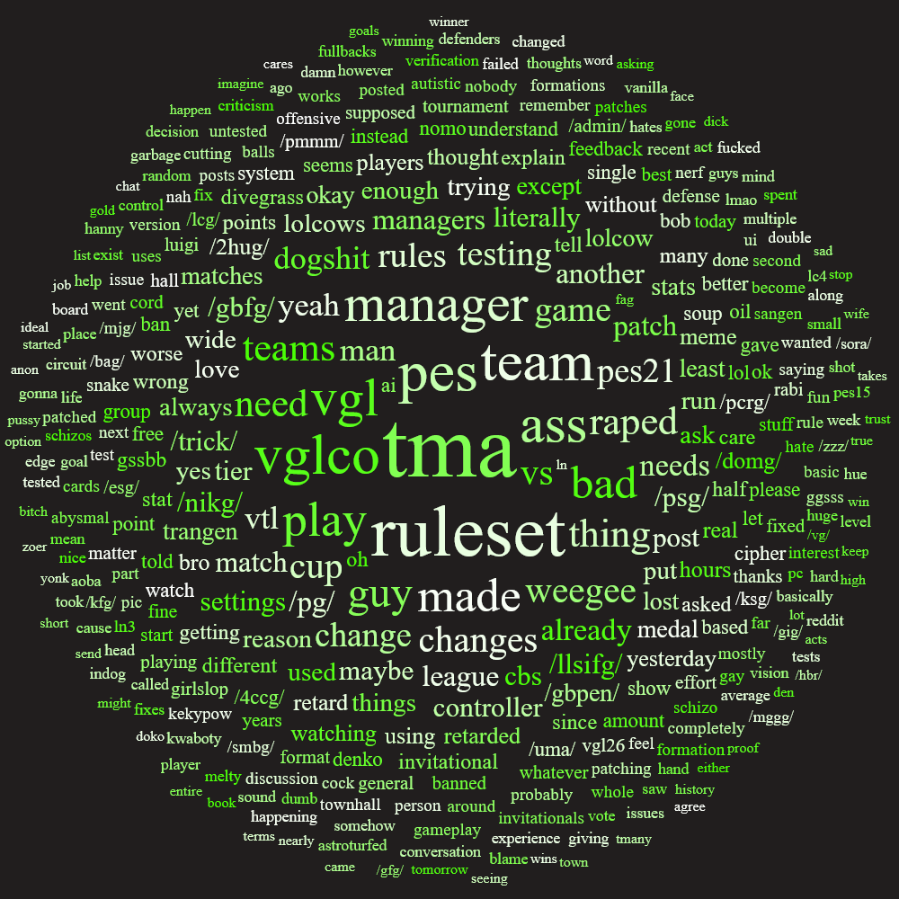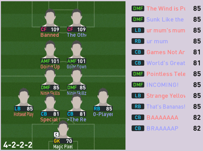 Put simply, a simulation of Pro Evolution Soccer being competed between teams which are embodiments of boards of the 4chan imageboard. The players represent facets of each board's culture. All of the matches are AI versus AI. However, humans "manage" each team, creating their tactics and giving input during games as they happen to make substitutions and tactical changes as they see fit.