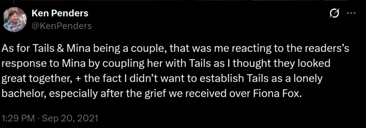 Oddest cope around here is trying to find ways around Amy and Sonic's characterizations. Sonic won't settle down and Amy will always love him and anything else isn't Sonic and Amy. Archie was only like that because the writers don't know these characters.