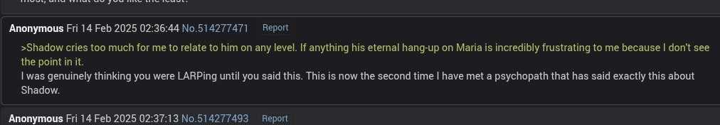 >>557598695He is doing it so Maria doesn't feel bad about Shadow being a sad emo with no friends
