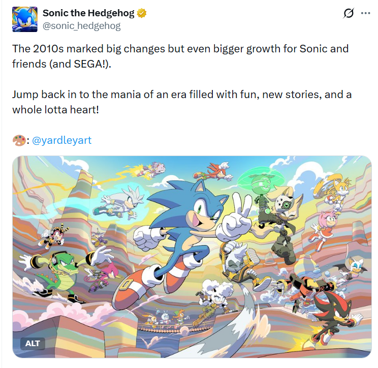 Welcome to Sonic the Hedgehog General! Here we discuss ALL things Sonic! /sthg/ #9067 - Love is still in the air Edition ==NEWS== >Sonic the Hedgehog's 35th anniversary https://www.sega.com/sonic-the-hedgehog?tab=35th-anniversary >Sonic the Hedgehog 4 to release on March 19, 2027 https://variety.com/2025/film/news/sonic-4-release-date-march-2027-1236280697/ >Paramount Developing Sonic Movie Spin-Offs https://comicbook.com/gaming/news/sonic-the-hedgehog-spin-off-movies-report-paramount/ ==Comic Release Dates== Sonic the Hedgehog: Sonic Racing: CrossWorlds - 04 March 2026 Sonic the Hedgehog #85 - 11 March 2026 Sonic the Hedgehog #86 - 08 April 2026 ==GENERAL INTEREST LINKS== https://rentry.org/sthglinks >Milestone pastebin: https://pastebin.com/LJCfZhY4 >Sonic Game/Mod Recommendation Spreadsheet: https://rentry.org/sthglinks#sonic-gamemod-recommendation-spreadsheet >Perfect System Collection: https://rentry.org/sthglinks#perfect-system-collection >Sonic comic scans: https://rentry.org/sthglinks#comics >Sonic shows: https://rentry.org/sthglinks#shows >SAGE https://sagexpo.org/ >SHC https://shc.zone/ >#10000 Project https://pastebin.com/Fb8Bt4ru >/sthg/ booru: https://sthg.booru.org/ >/sthg/ OC info: https://sthgoc.tumblr.com/archive/ >/sthg/ CyTube: https://cytube/r/sthg >/sthg/ Pixel World: https://ourworldofpixels.com/sthg Previous Zone: >>557547734