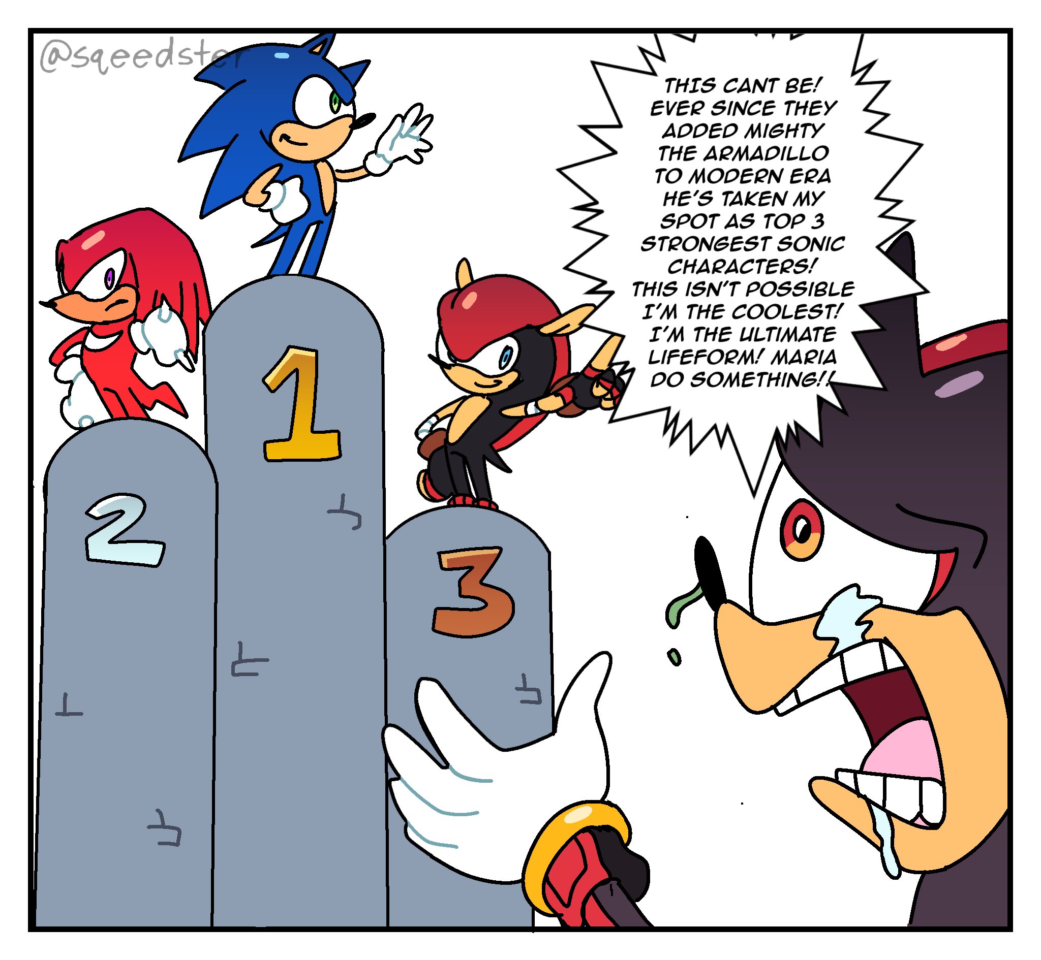 I honestly don't care about shipping, I just like seeing Amy fans sperg out. It's genuinely funny to me watching them trying to "prove" Sonamy is canon, like that one scene in Always Sunny except not even SEGA themselves care