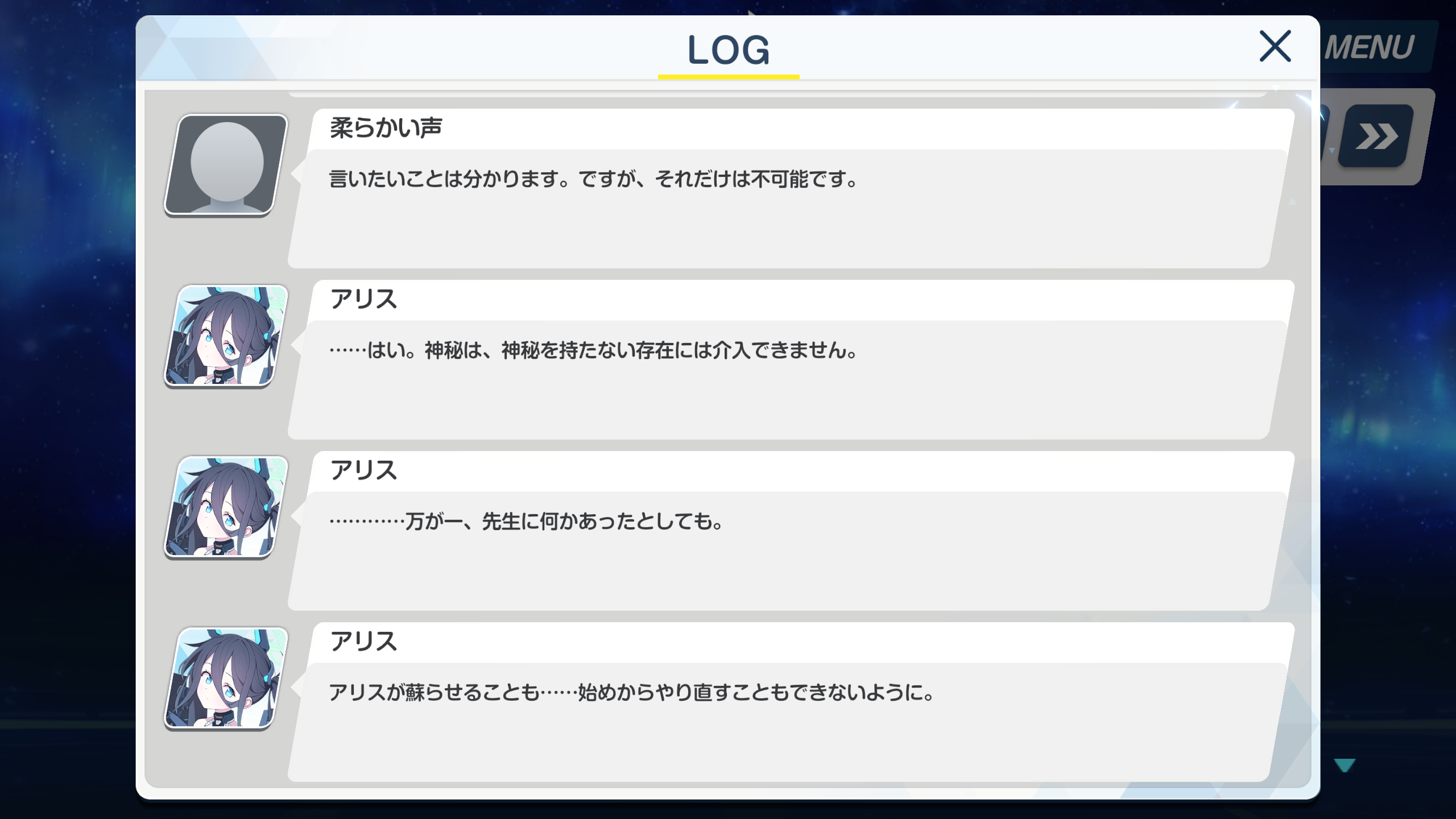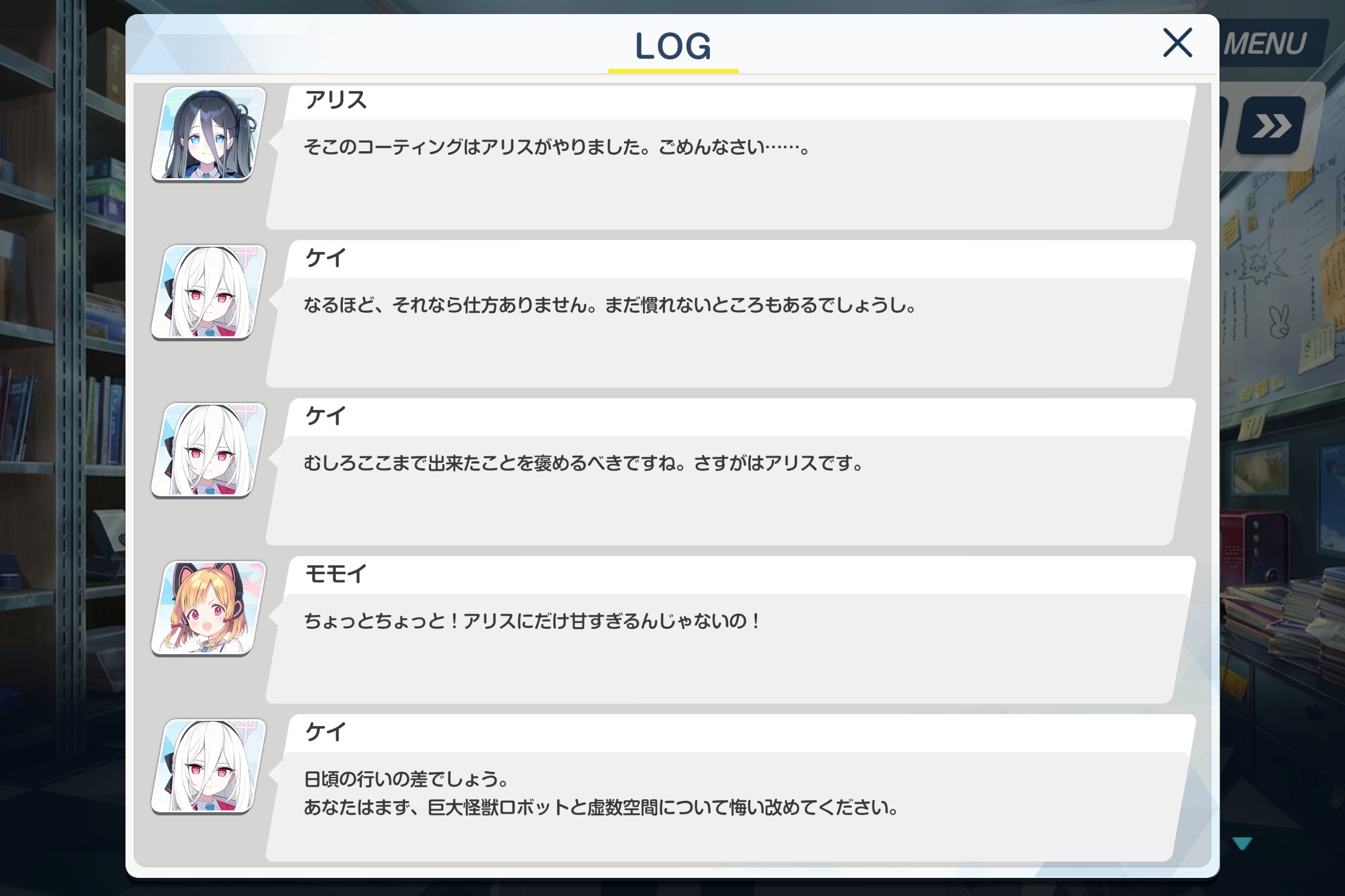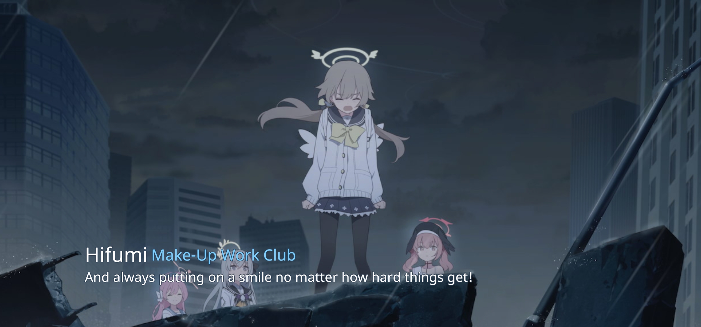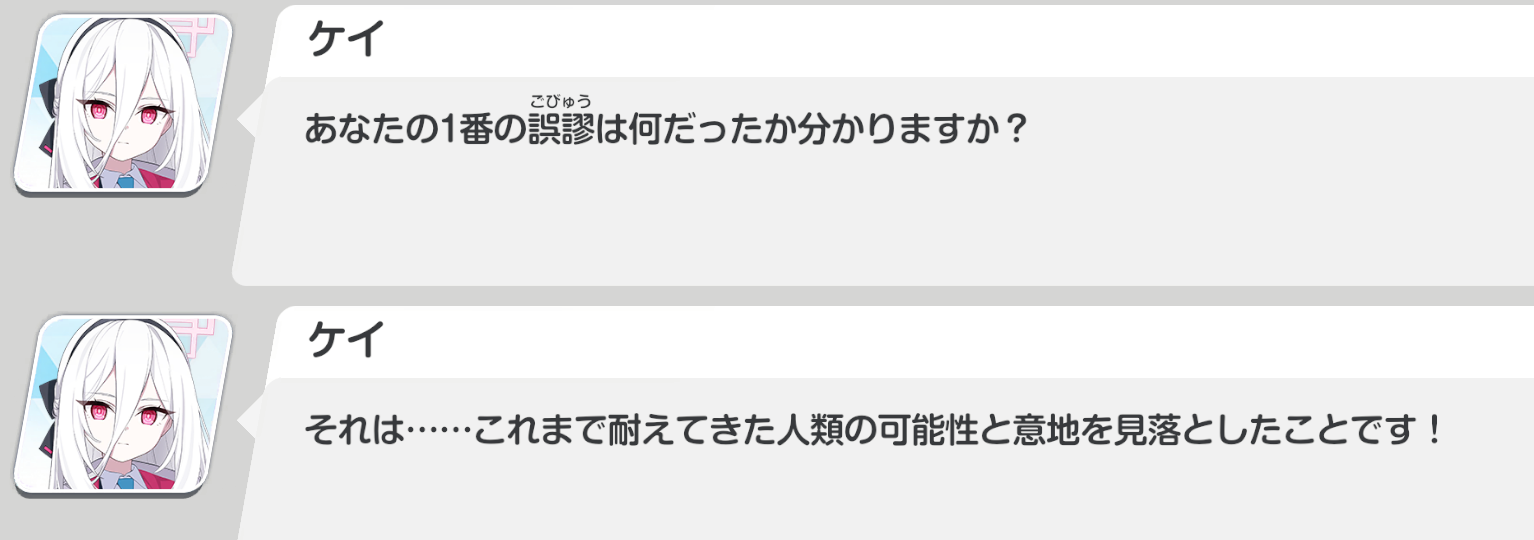 Her name went from just Kei to Tendou Kei to show Aris's god powers have in-game consequences.