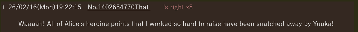 That's the problem, she's too cowardly to face Yuuka.