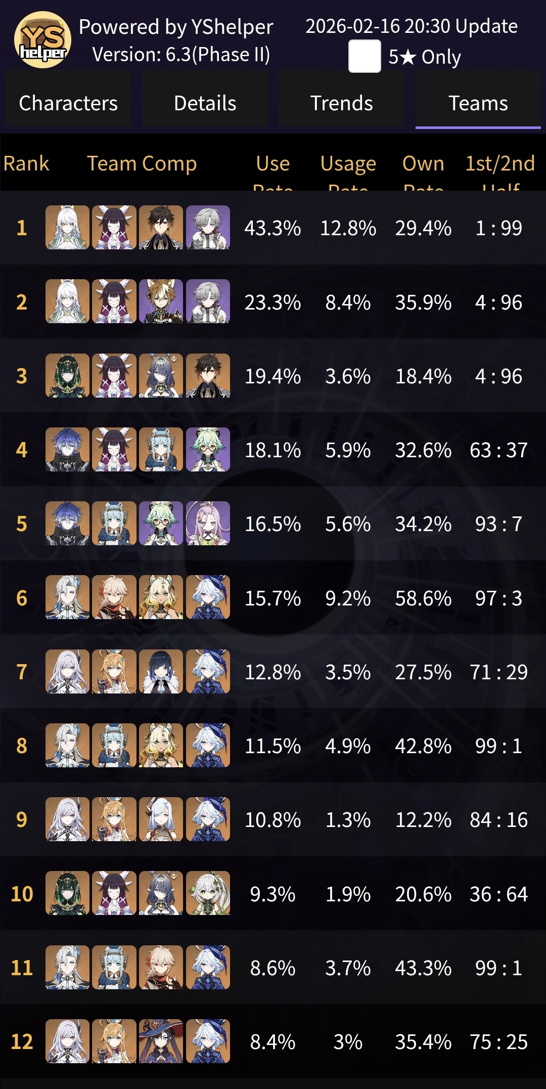 New to those ownership and usage rates. Can anybody explain why Neuvillette has negative ownership rate compared to the previous yshelper report? I swear I saw 74% in 5.8. Why is it 70% now?