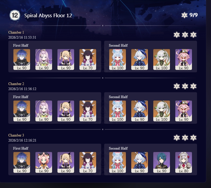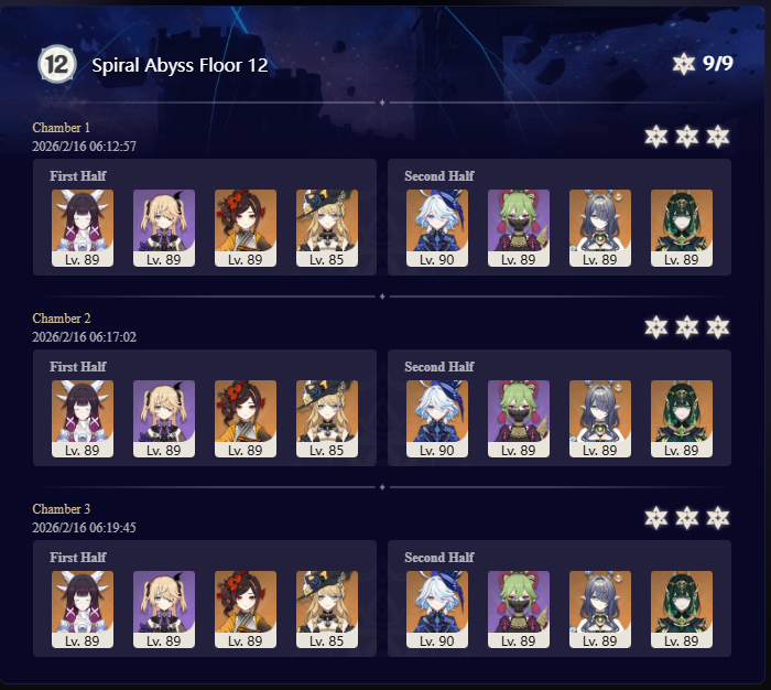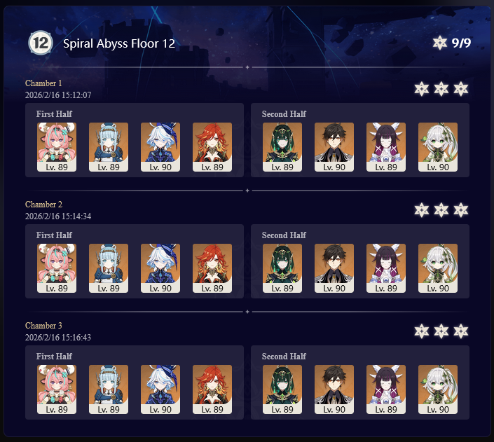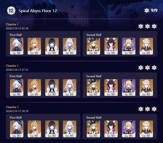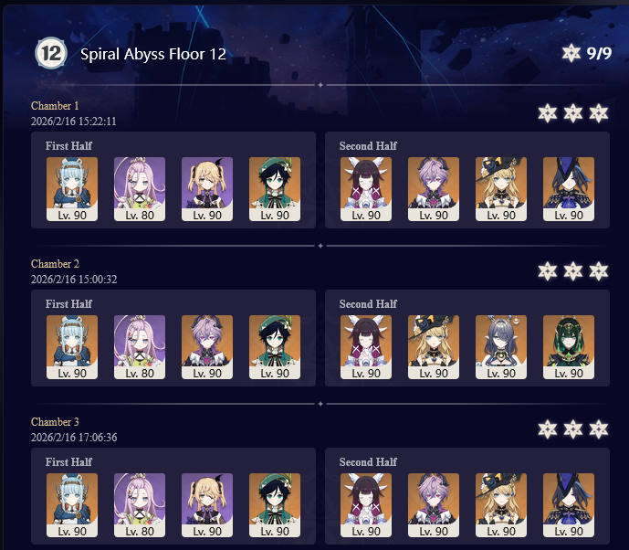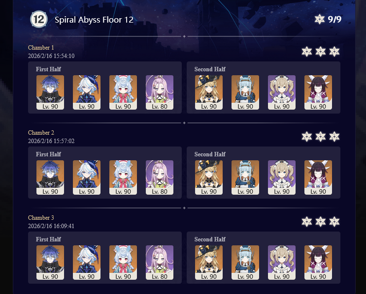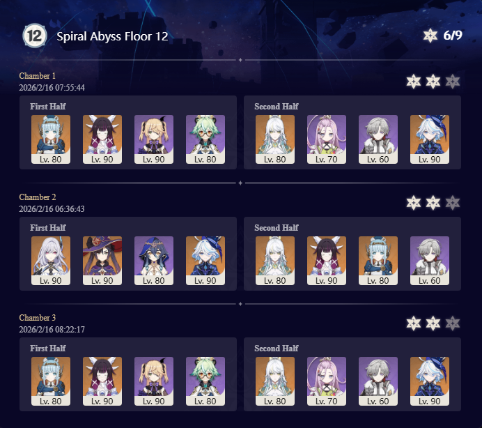 I got 33 stars this abyss and the last abyss after getting Columbina, Ineffa, and Zibai. Before then I couldn't get past floor 12 chamber 1. I started playing summer 2025.