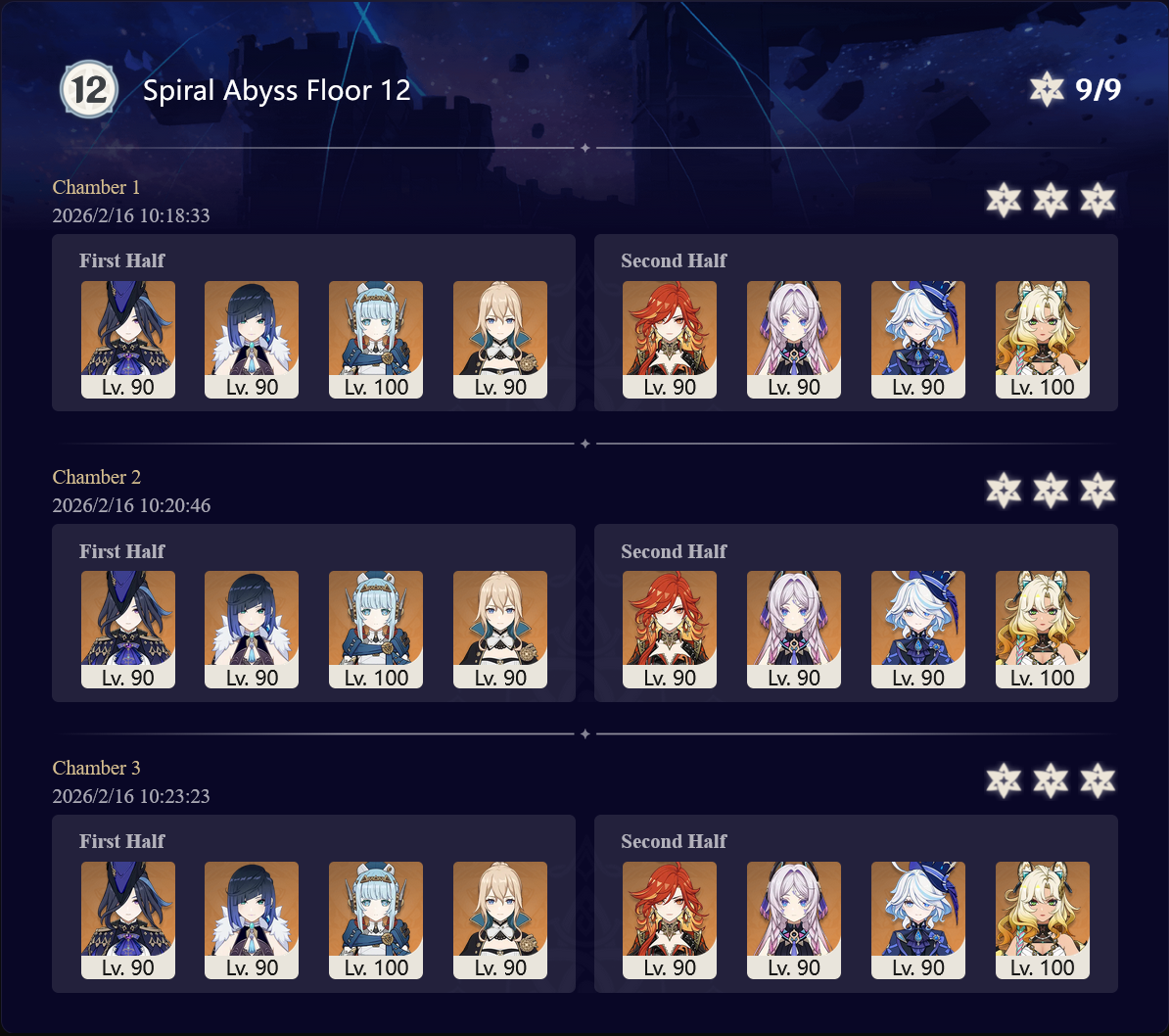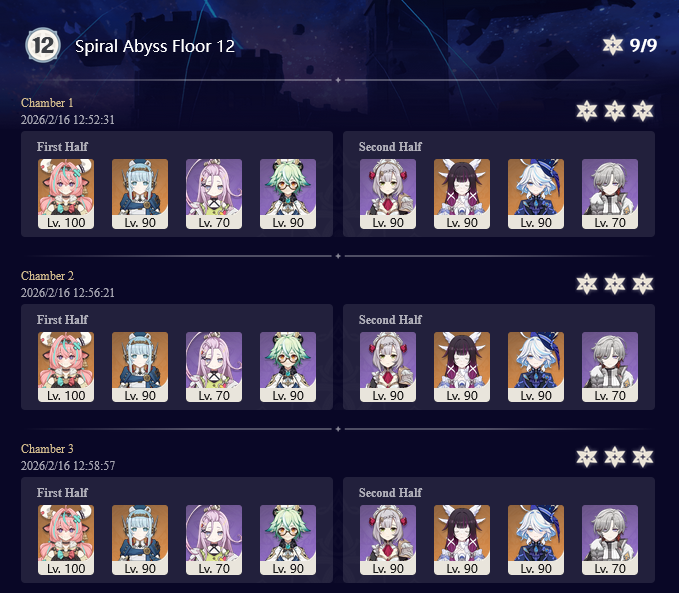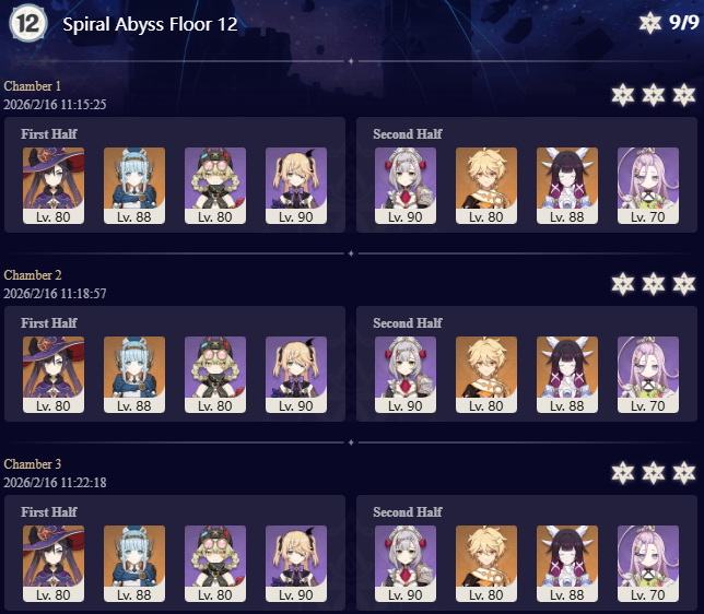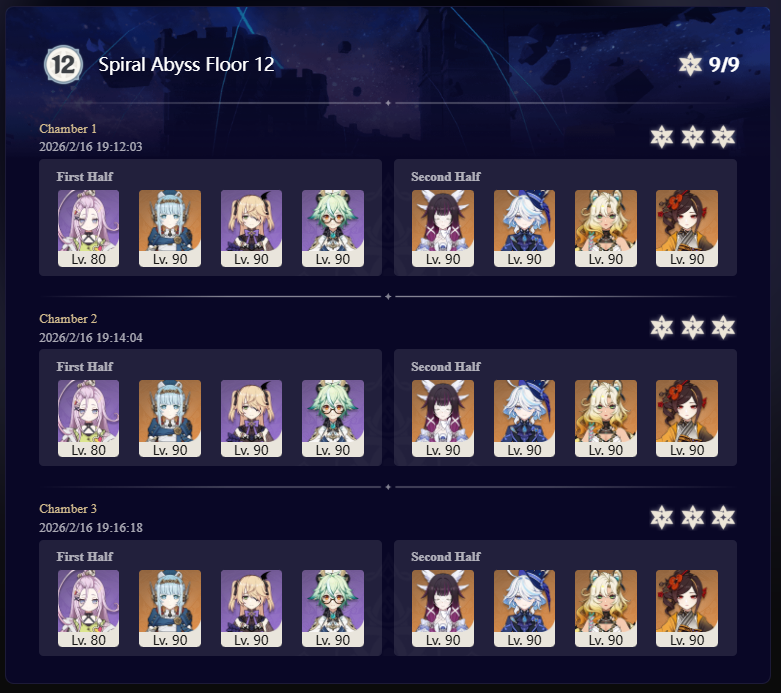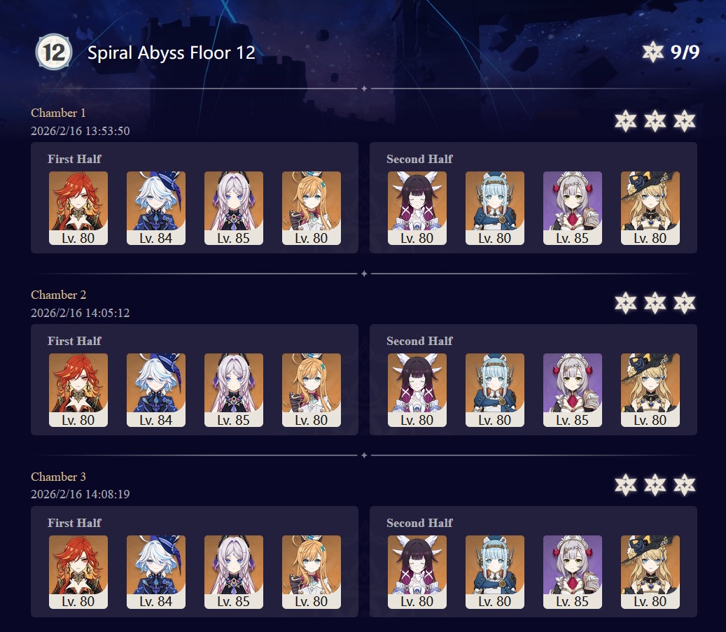 I got 33 stars this abyss and the last abyss after getting Columbina, Ineffa, and Zibai. Before then I couldn't get past floor 12 chamber 1. I started playing summer 2025.