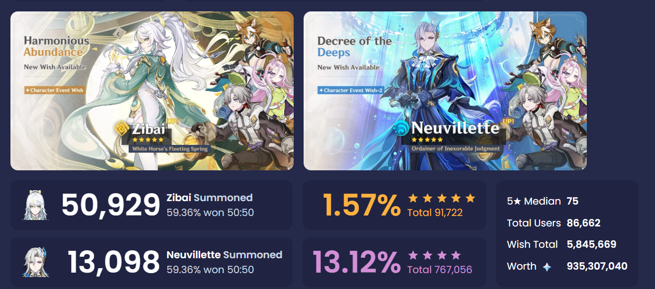 Previous: >>557608349 >Version "Luna V" "Homeward, He Who Caught the Wind" Trailerhttps://youtu.be/p02WXZZ84M4 (EN)https://youtu.be/V30u55XoYrE (JP) >Character Trailer - "Zibai: Mortal Flesh to Kindred Earth" https://youtu.be/6iE9Gwiuz3E (EN)https://youtu.be/t4xEbesXXtg (JP) >Character Trailer - "Illuga: Shimmering Plumes of the Dawn Oriole"https://youtu.be/qoF5VjO0_iE (EN)https://youtu.be/sCPfCRuInAc (JP) >Character Teaser - "Zibai: As Drifting Wayside Dust"https://youtu.be/uFKQL6xPbRU (EN)https://youtu.be/1Y3Q1xNktU8 (JP) >Current character banner: Zibai, Neuvillette, Illuga, Aino, Gorou>Current weapon banner: Lightbearing Moonshard (Sword), Tome of the Eternal Flow (Catalyst)https://www.hoyolab.com/article/43195205 >Daily check-in rewards (permanent)https://webstatic-sea.mihoyo.com/ys/event/signin-sea/index.html?act_id=e202102251931481&lang=en-us >Redeemable Codes with Primogems (all regions): https://genshin.mihoyo.com/en/giftGENSHINGIFT8X73KH58KDHNJTSHBHPPKUSV (NEW) >Useful Links (Wiki, Simulators, Maps, Character Builds, /gig/ friendlist, Third-Party Tools, etc.)https://rentry.org/giglinks /gig/ OP pastebin (use this if making new thread):https://pastebin.com/ca0zseQ9