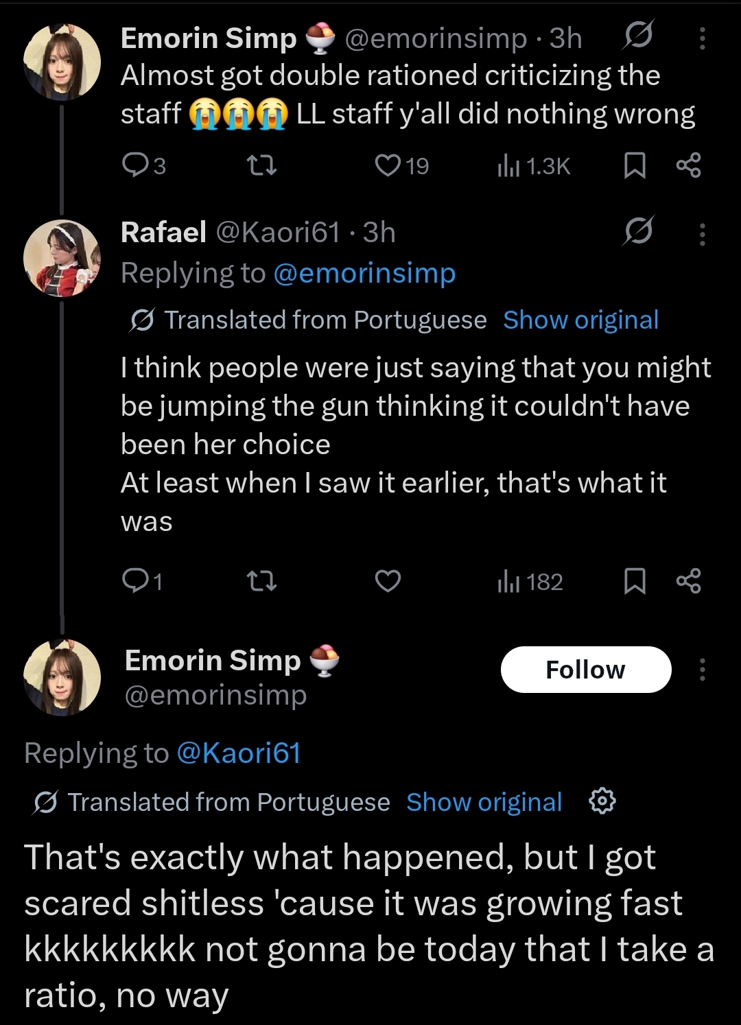 Its feels nice that Emitsun still looking out for her kouhai, that she's supported the Bluebird girls in their first liveIf only staff support her back...