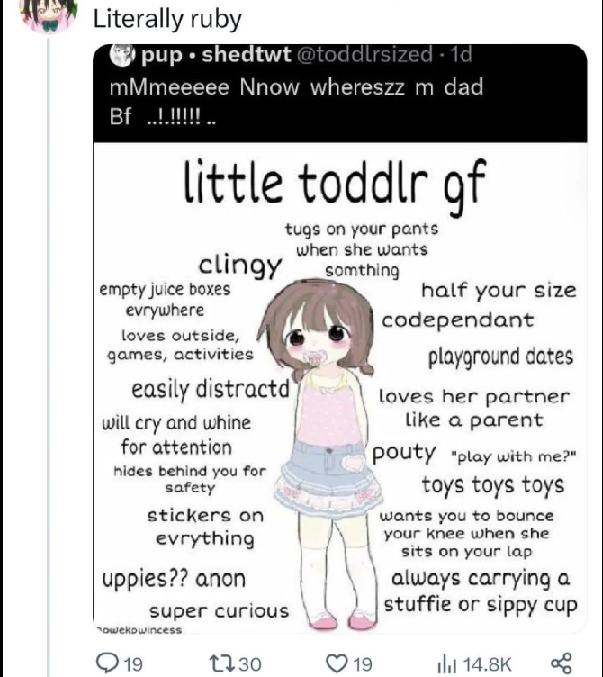 Actual female pedo Miafag? https://x.com/daleka333