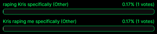 >>557678803Honestly idk how someone put in so many (other) votes with vpns blocked but it’s funny. No new vote counts are going up though, so it’s just them adding options